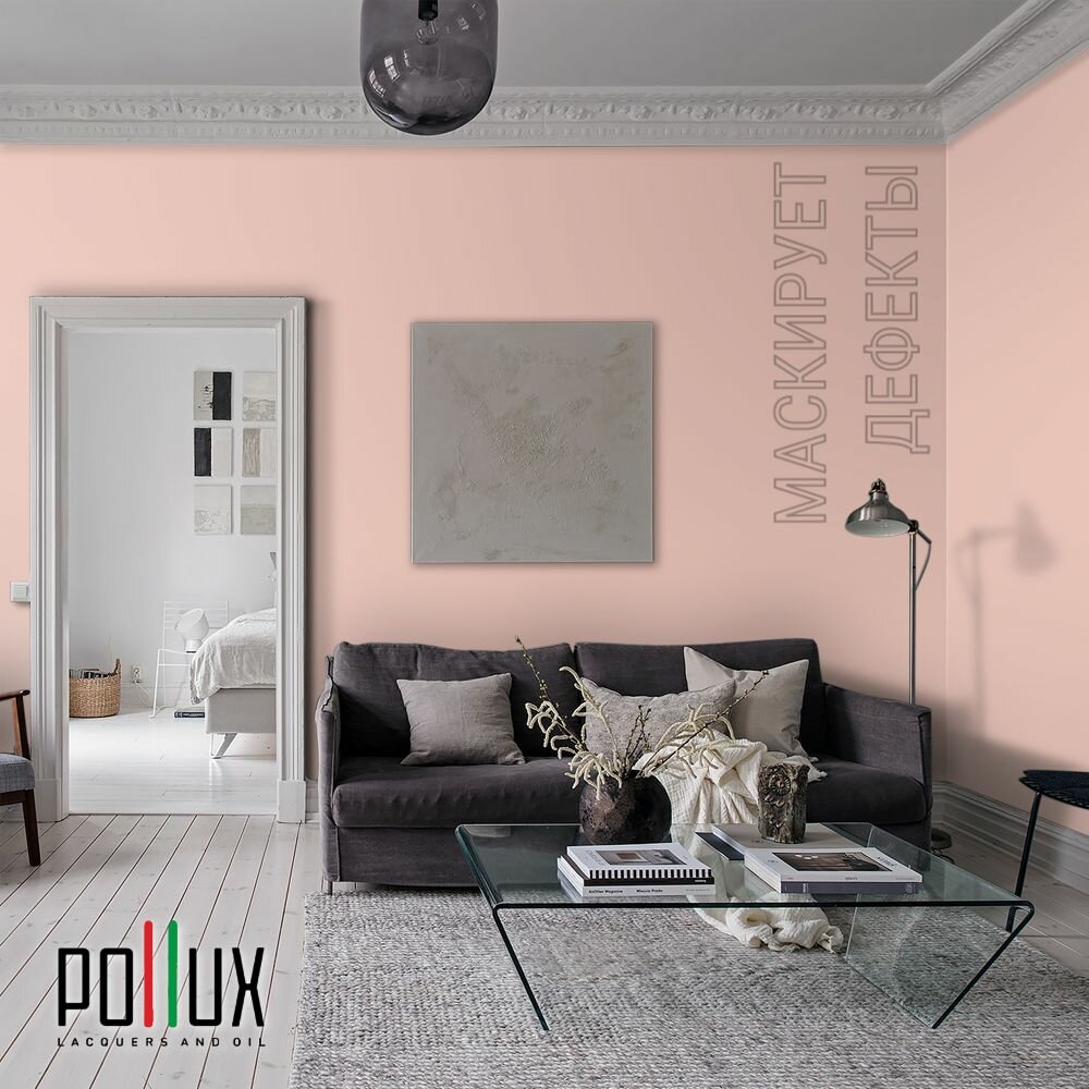Краска моющаяся интерьерная для стен и потолков, Pollux INTERIOR без запаха, быстросохнущая, акриловая, матовое покрытие, цвет NCS S 1040-R50B, 1л.