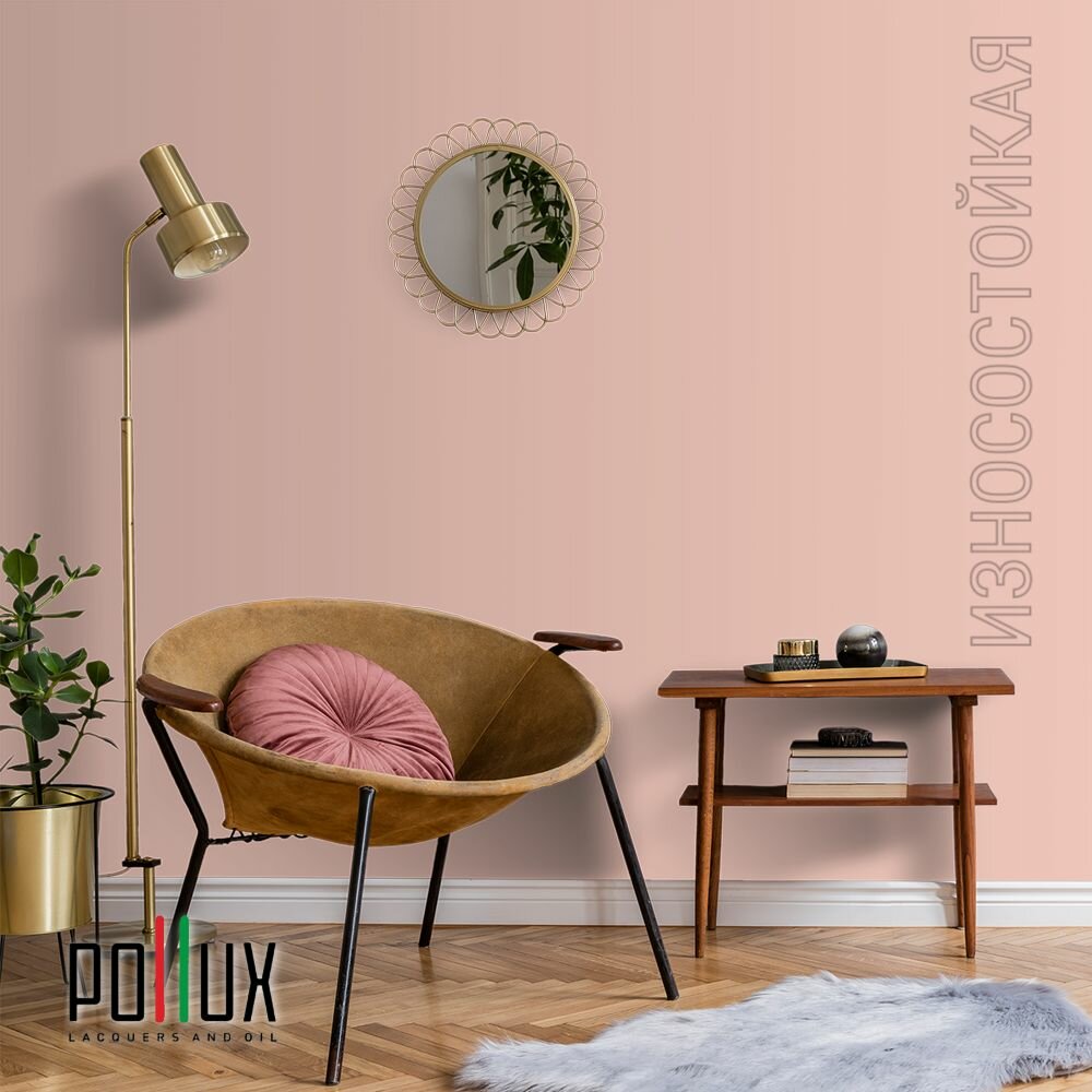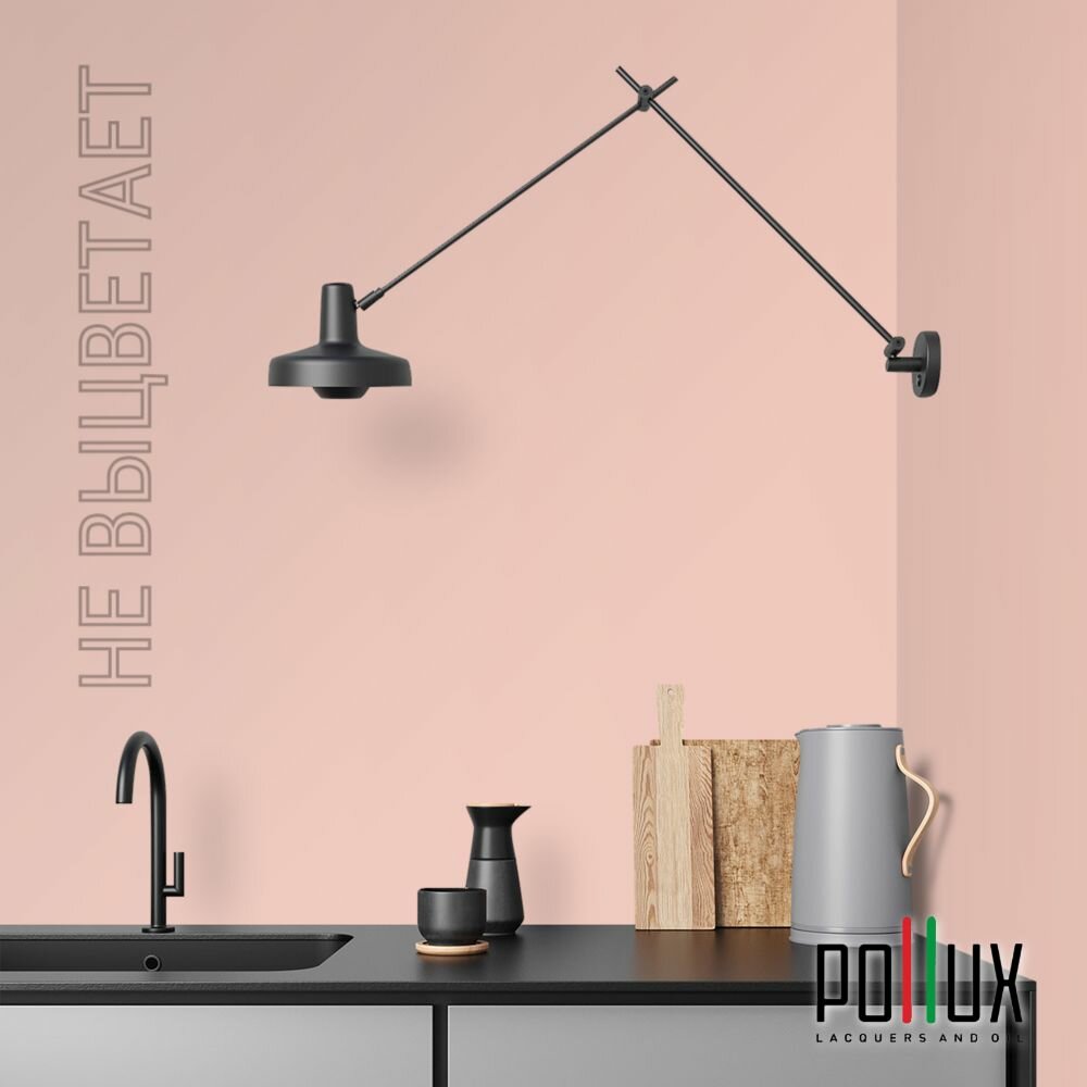 Краска моющаяся интерьерная для стен и потолков, Pollux INTERIOR без запаха, быстросохнущая, акриловая, матовое покрытие, цвет NCS S 1580-Y80R, 1л.