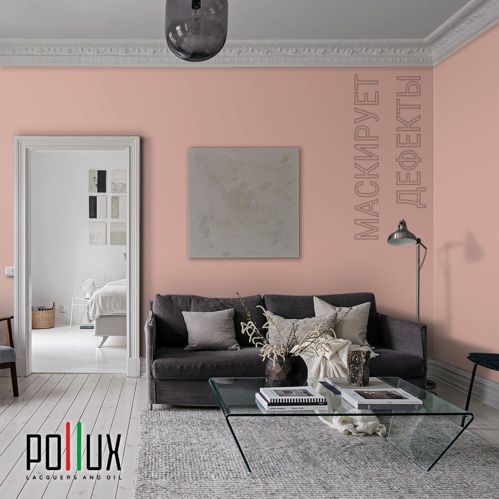 Краска моющаяся интерьерная для стен и потолков, Pollux INTERIOR без запаха, быстросохнущая, акриловая, матовое покрытие, цвет NCS S 3030-Y80R, 1л.