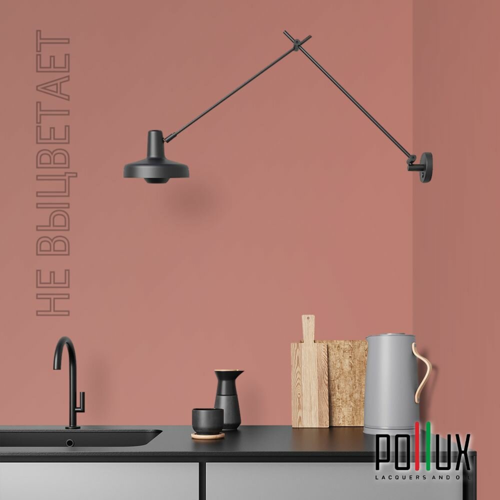 Краска моющаяся интерьерная для стен и потолков, Pollux INTERIOR без запаха, быстросохнущая, акриловая, матовое покрытие, цвет NCS S 3030-Y80R, 1л.