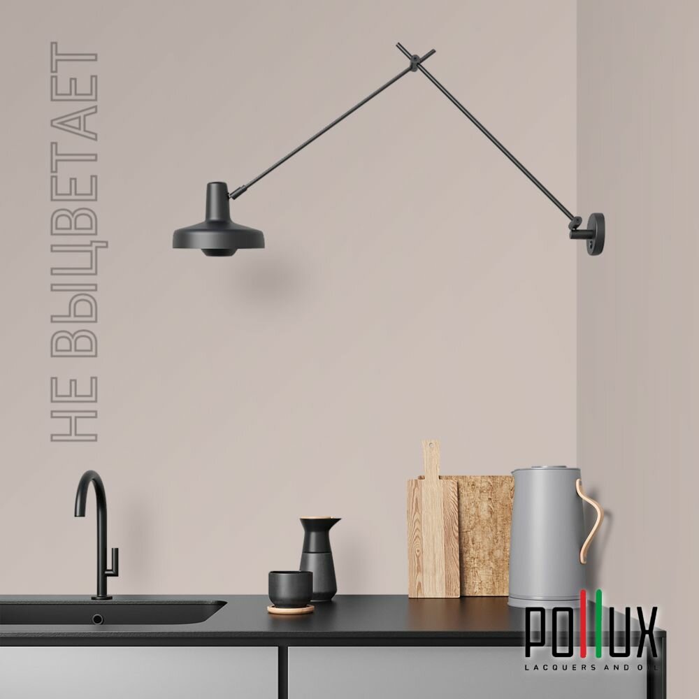 Краска моющаяся интерьерная для стен и потолков, Pollux INTERIOR без запаха, быстросохнущая, акриловая, матовое покрытие, цвет NCS S 7020-Y80R, 1л.