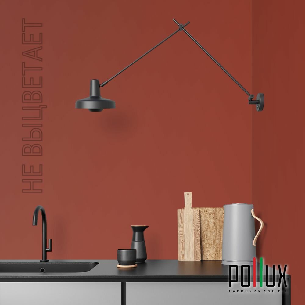 Краска моющаяся интерьерная для стен и потолков, Pollux INTERIOR без запаха, быстросохнущая, акриловая, матовое покрытие, цвет NCS S 3030-Y80R, 1л.
