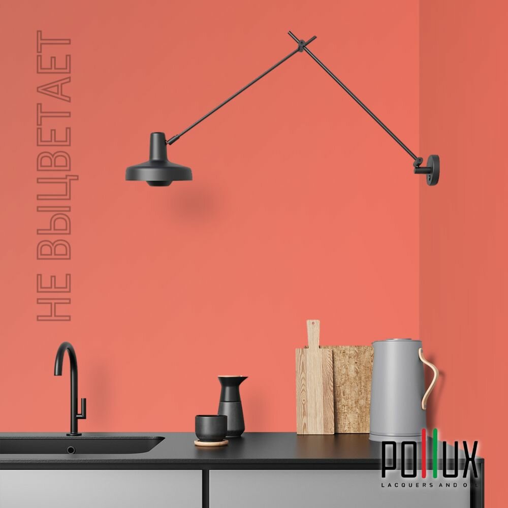 Краска моющаяся интерьерная для стен и потолков, Pollux INTERIOR без запаха, быстросохнущая, акриловая, матовое покрытие, цвет NCS S 1580-Y80R, 1л.