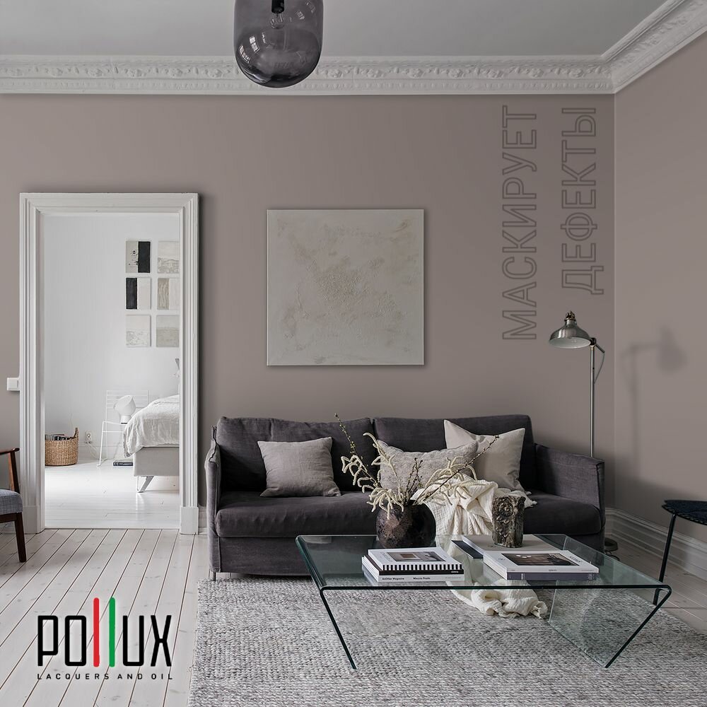 Краска моющаяся интерьерная для стен и потолков, Pollux INTERIOR без запаха, быстросохнущая, акриловая, матовое покрытие, цвет NCS S 7020-Y80R, 1л.