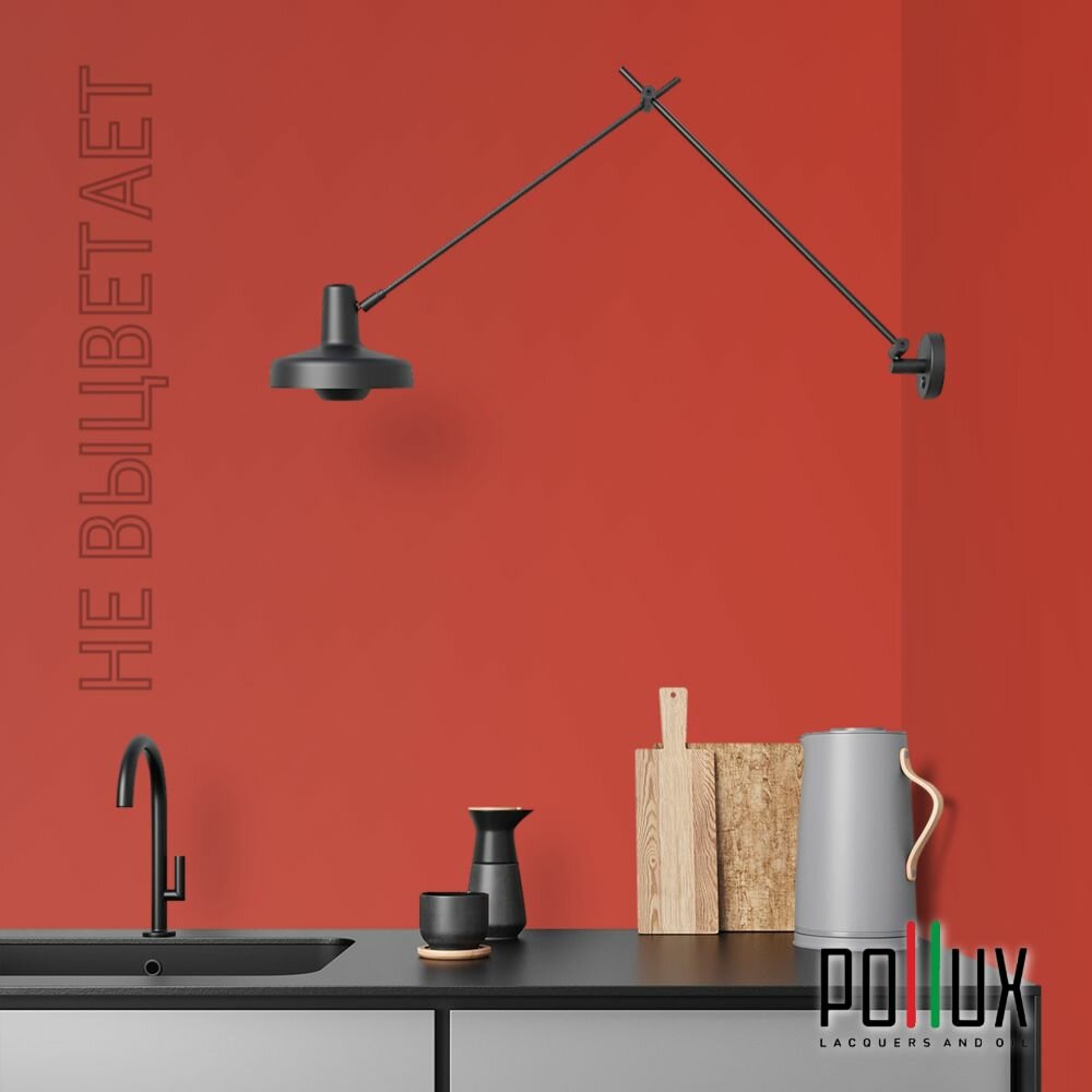 Краска моющаяся интерьерная для стен и потолков, Pollux INTERIOR без запаха, быстросохнущая, акриловая, матовое покрытие, цвет NCS S 3030-Y80R, 1л.