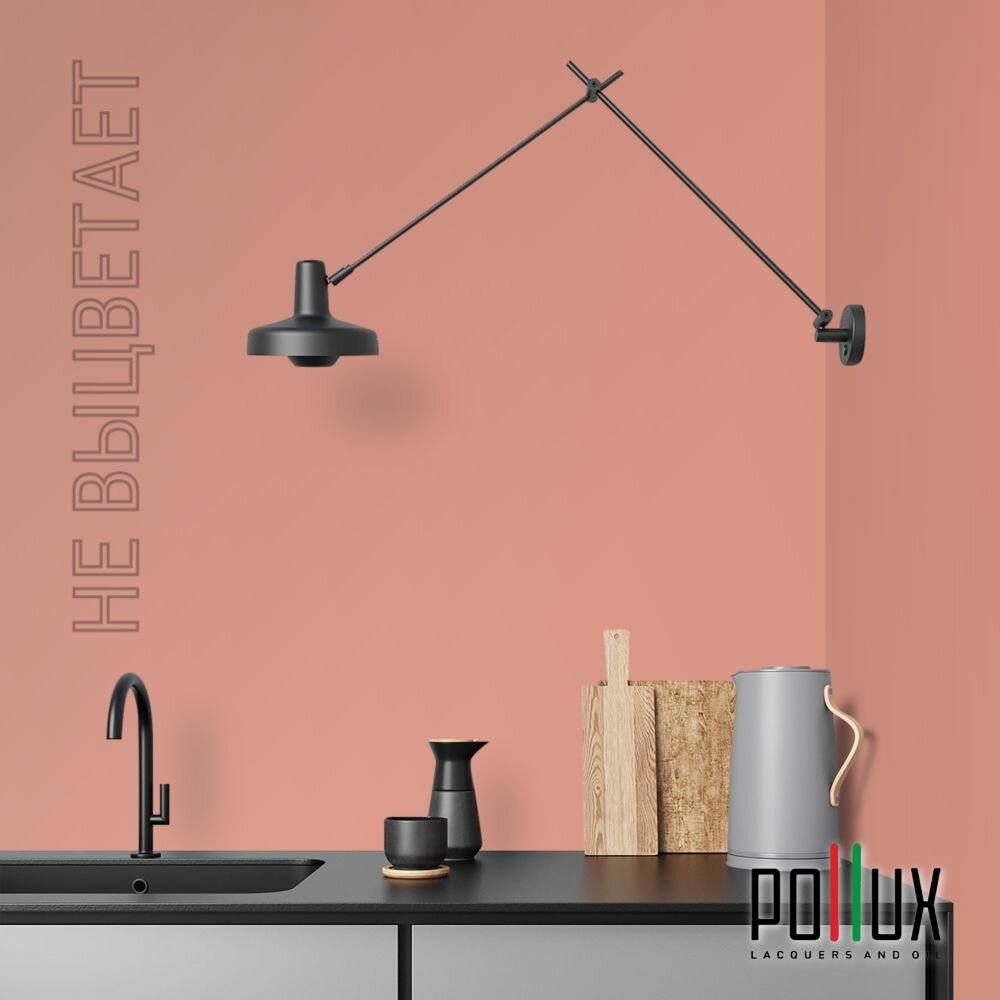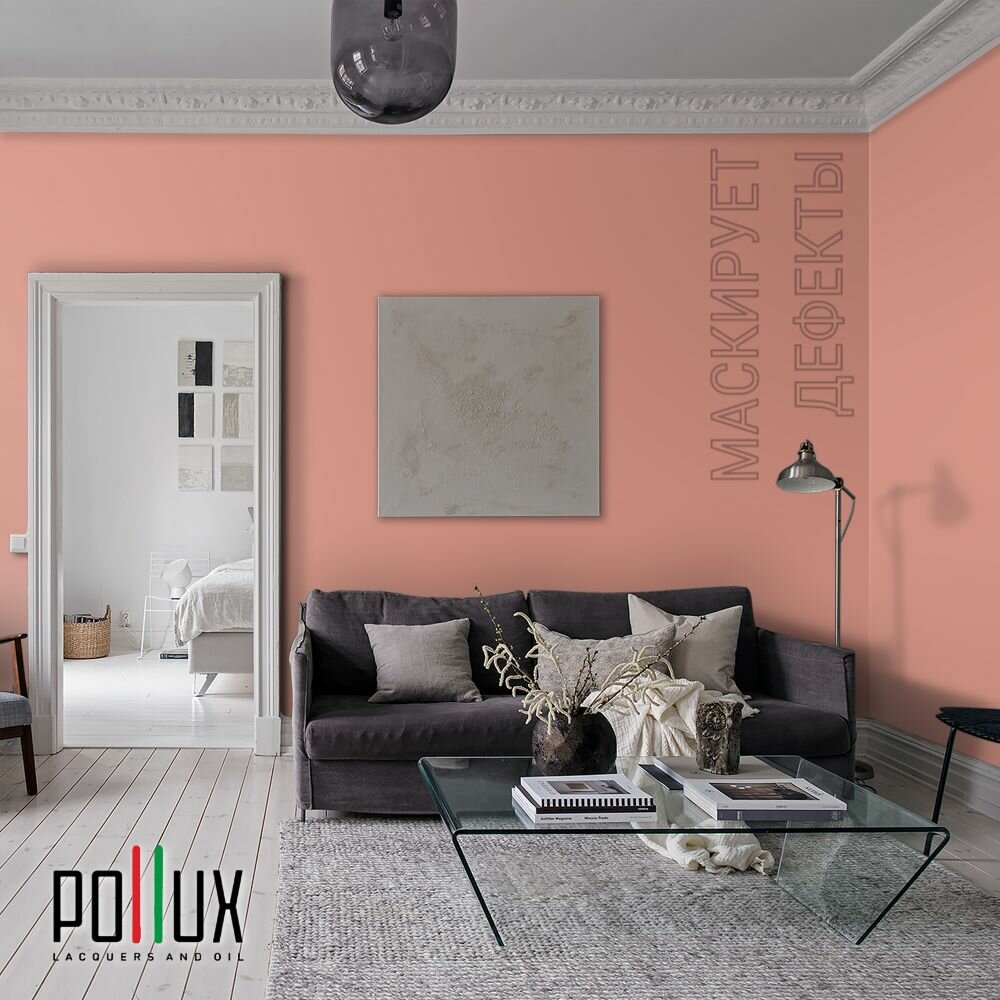Краска моющаяся интерьерная для стен и потолков, Pollux INTERIOR без запаха, быстросохнущая, акриловая, матовое покрытие, цвет NCS S 3030-Y80R, 1л.