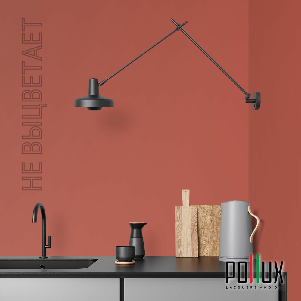 Краска моющаяся интерьерная для стен и потолков, Pollux INTERIOR без запаха, быстросохнущая, акриловая, матовое покрытие, цвет NCS S 1040-R50B, 1л.