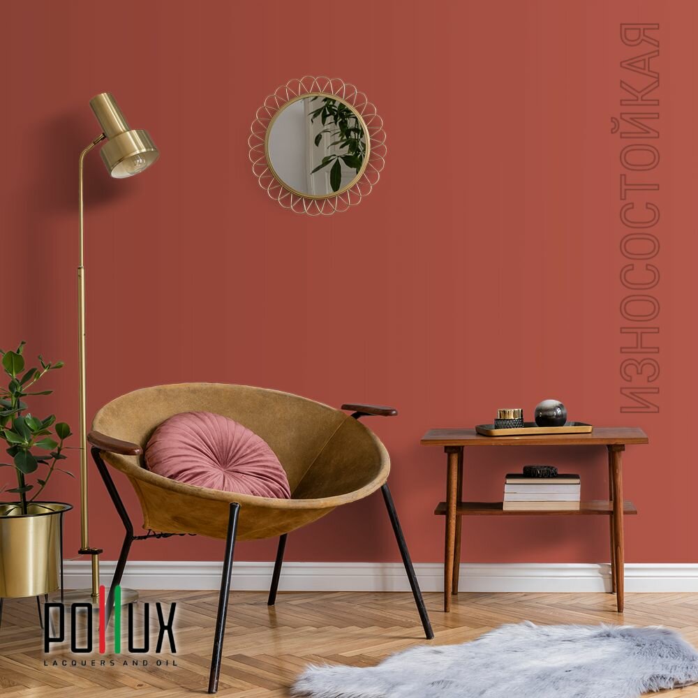 Краска моющаяся интерьерная для стен и потолков, Pollux INTERIOR без запаха, быстросохнущая, акриловая, матовое покрытие, цвет NCS S 3030-Y80R, 1л.