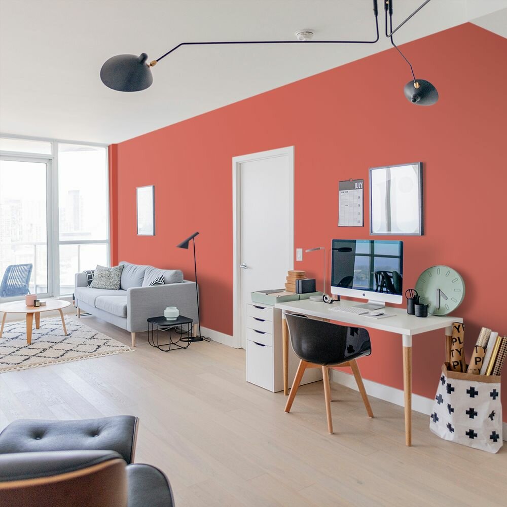 Краска моющаяся интерьерная для стен и потолков, Pollux INTERIOR без запаха, быстросохнущая, акриловая, матовое покрытие, цвет NCS S 3030-Y80R, 1л.