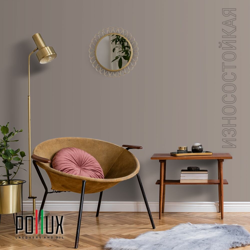 Краска моющаяся интерьерная для стен и потолков, Pollux INTERIOR без запаха, быстросохнущая, акриловая, матовое покрытие, цвет NCS S 7005-Y80R, 1л.