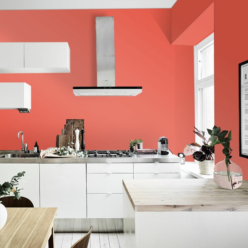 Краска моющаяся интерьерная для стен и потолков, Pollux INTERIOR без запаха, быстросохнущая, акриловая, матовое покрытие, цвет NCS S 3030-Y80R, 1л.