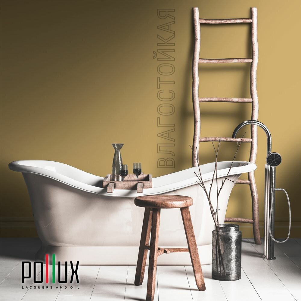 Краска моющаяся интерьерная для стен и потолков, Pollux INTERIOR без запаха, быстросохнущая, акриловая, матовое покрытие, цвет NCS S 4040-Y10R, 1л.