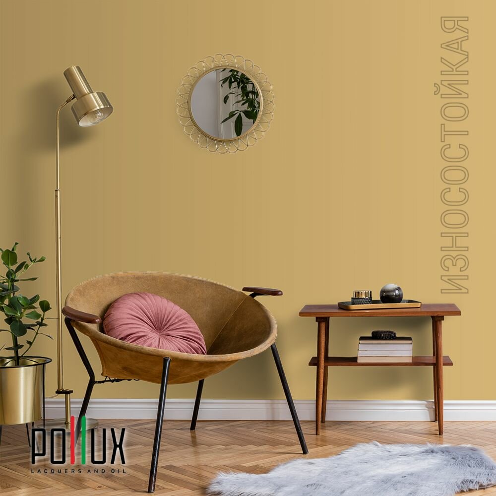 Краска моющаяся интерьерная для стен и потолков, Pollux INTERIOR без запаха, быстросохнущая, акриловая, матовое покрытие, цвет NCS S 0570-Y10R, 1л.