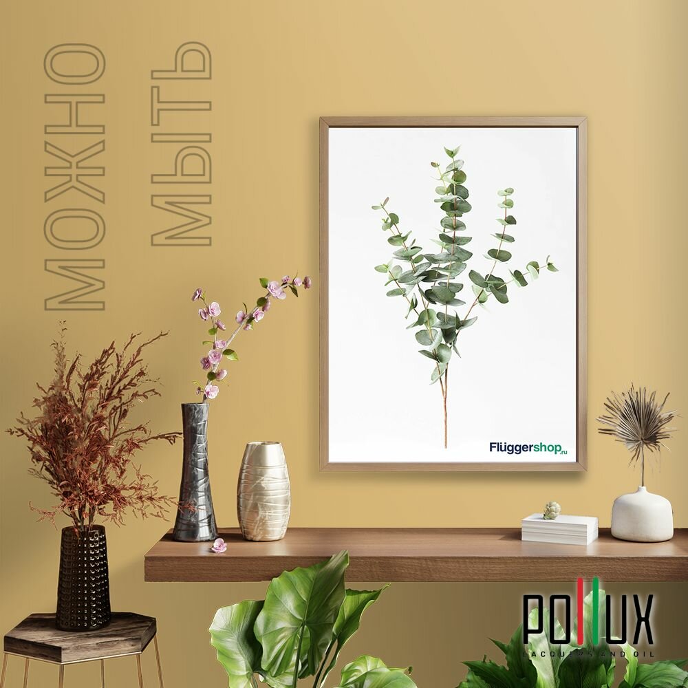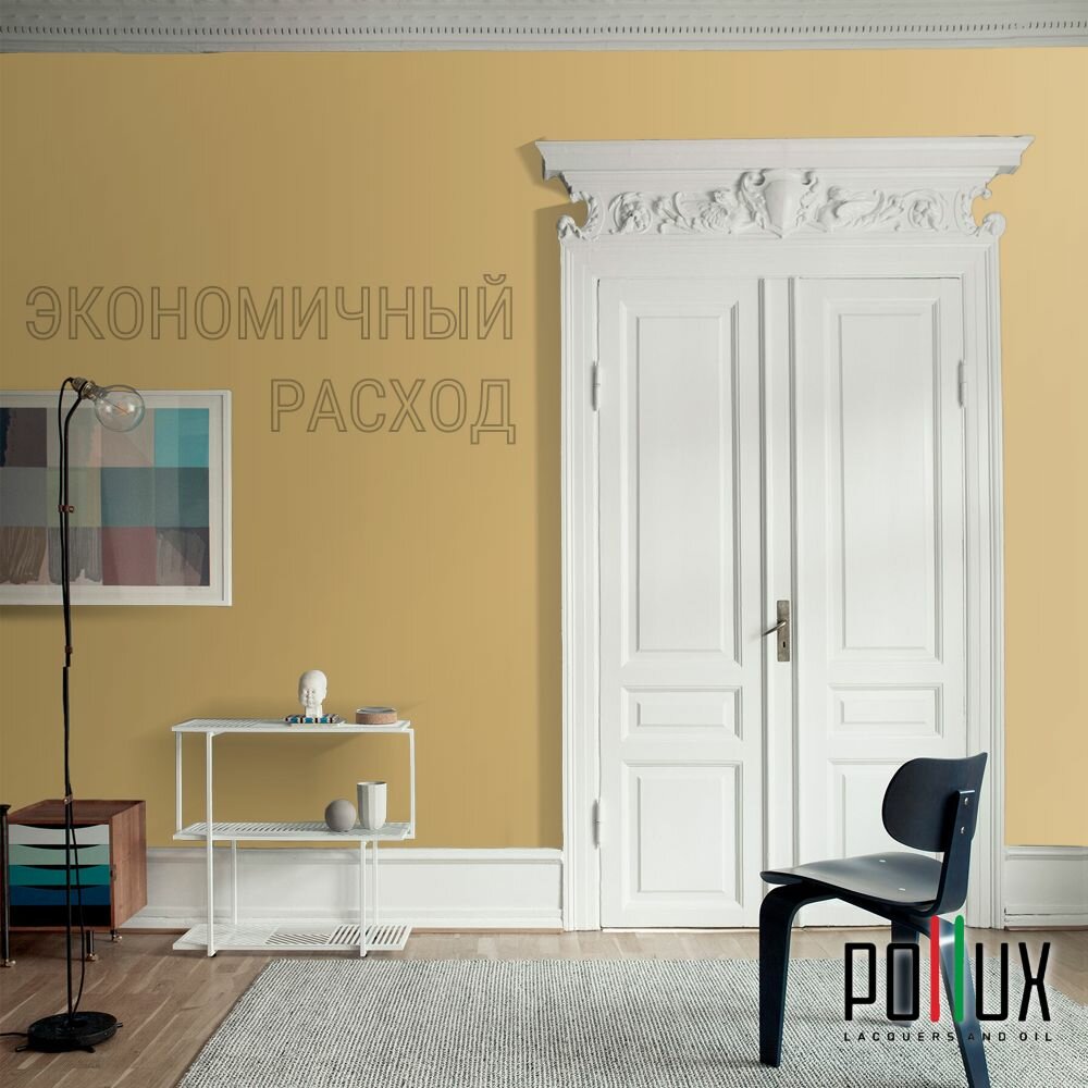 Краска моющаяся интерьерная для стен и потолков, Pollux INTERIOR без запаха, быстросохнущая, акриловая, матовое покрытие, цвет NCS S 1080-Y10R, 1л.