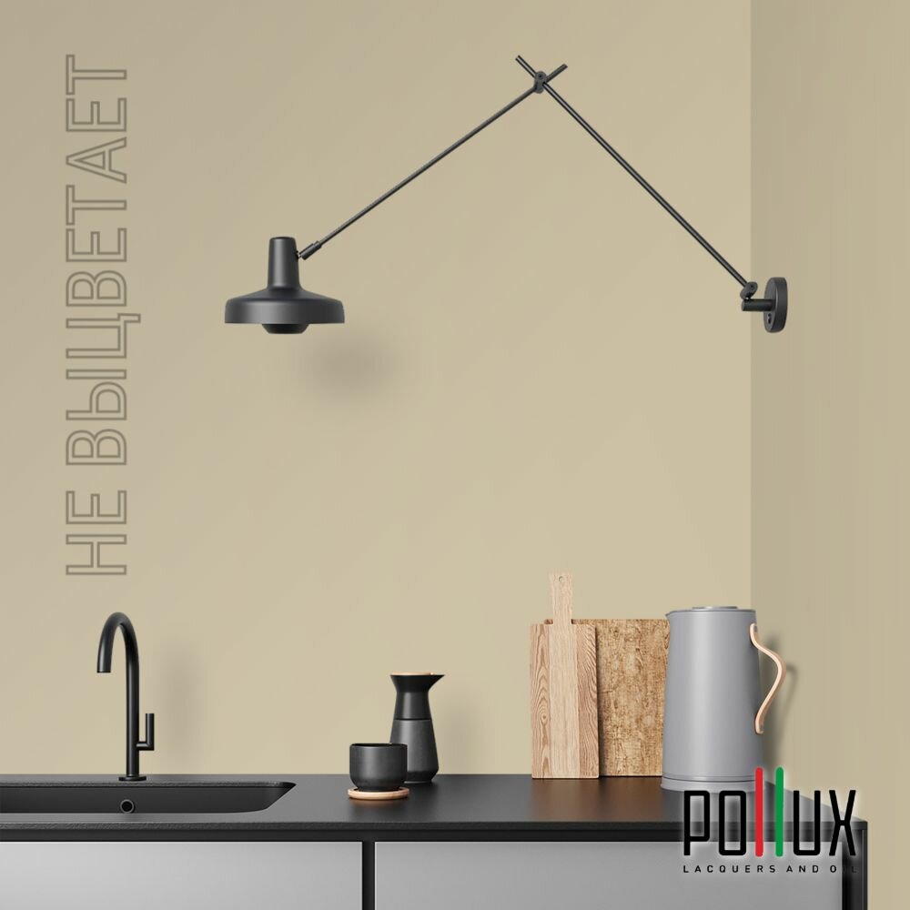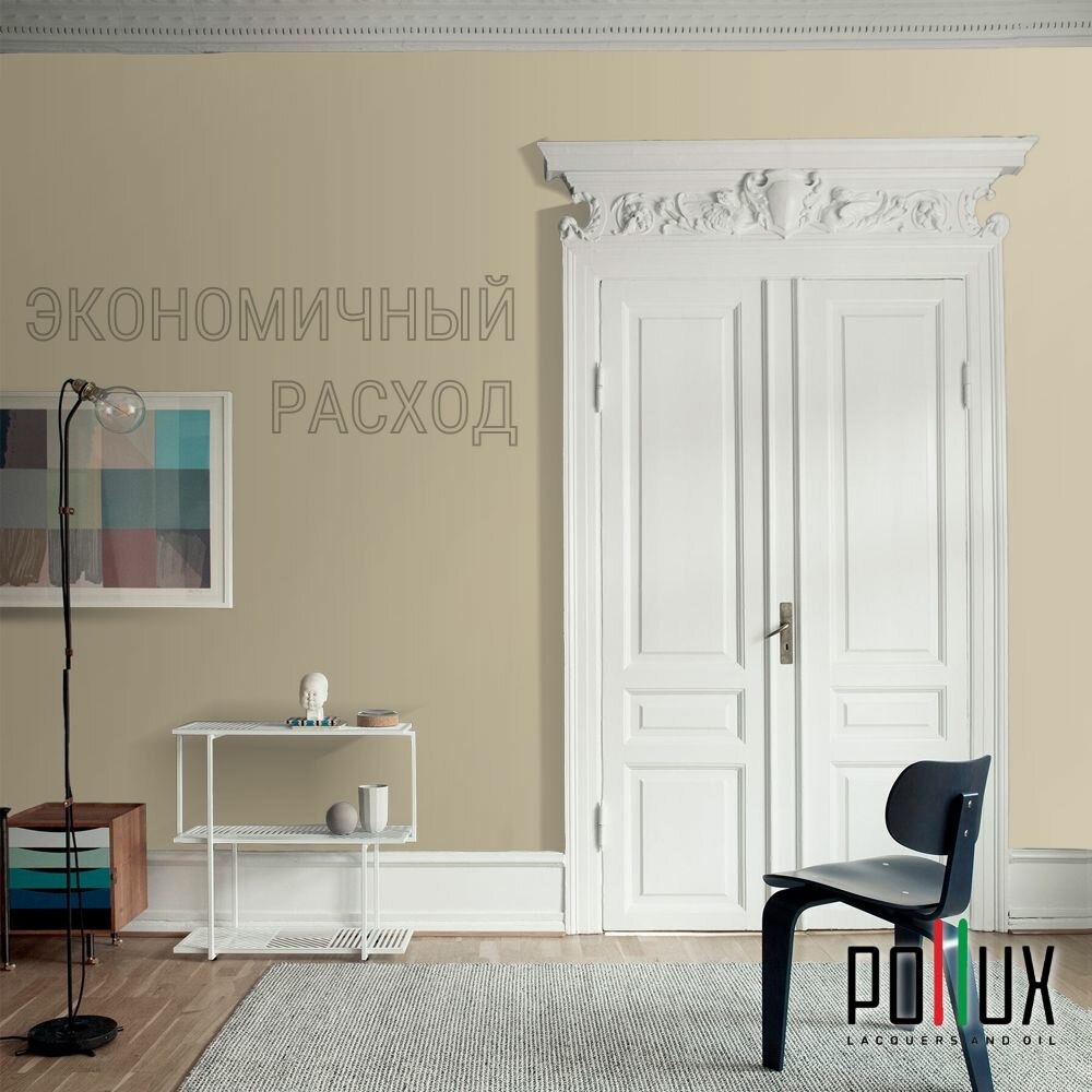 Краска моющаяся интерьерная для стен и потолков, Pollux INTERIOR без запаха, быстросохнущая, акриловая, матовое покрытие, цвет NCS S 7010-Y10R, 1л.