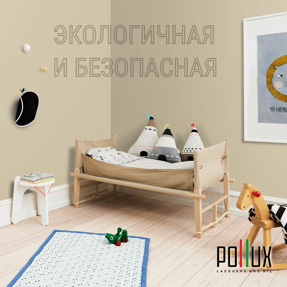 Краска моющаяся интерьерная для стен и потолков, Pollux INTERIOR без запаха, быстросохнущая, акриловая, матовое покрытие, цвет NCS S 1505-Y10R, 1л.