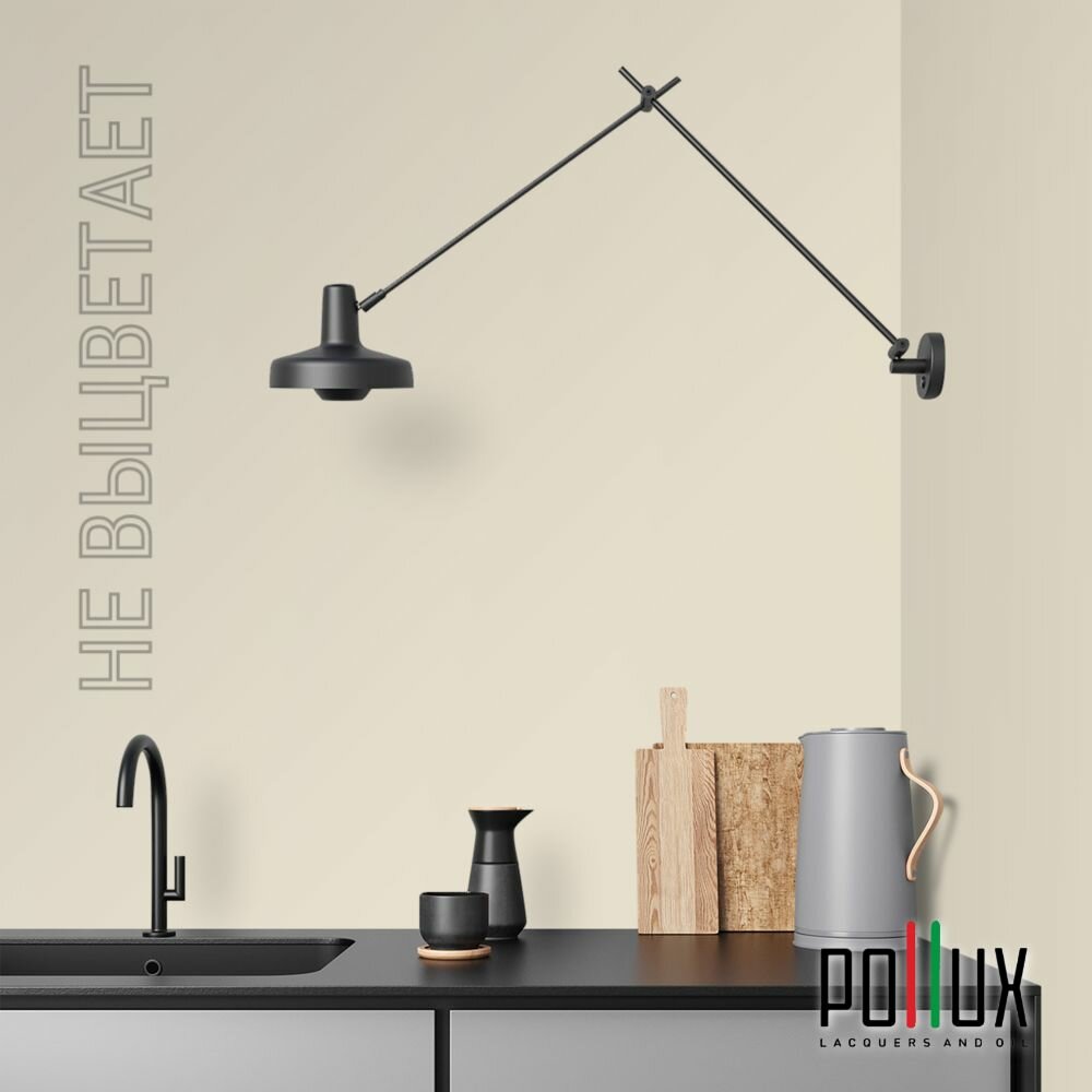 Краска моющаяся интерьерная для стен и потолков, Pollux INTERIOR без запаха, быстросохнущая, акриловая, матовое покрытие, цвет NCS S 7010-Y10R, 1л.