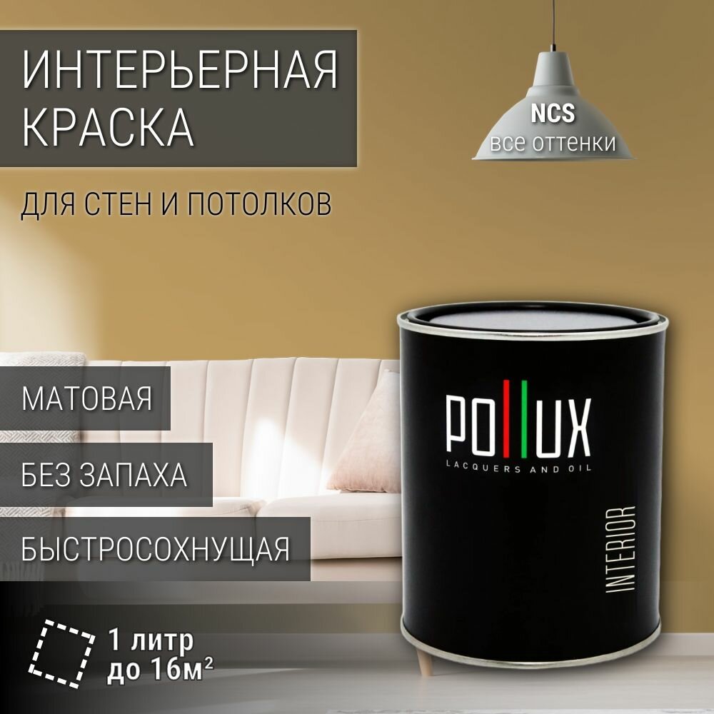 Краска моющаяся интерьерная для стен и потолков, Pollux INTERIOR без запаха, быстросохнущая, акриловая, матовое покрытие, цвет NCS S 7020-Y10R, 1л.