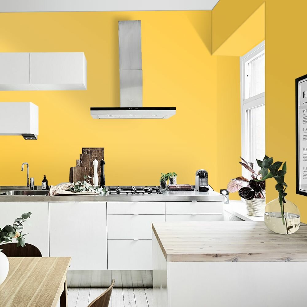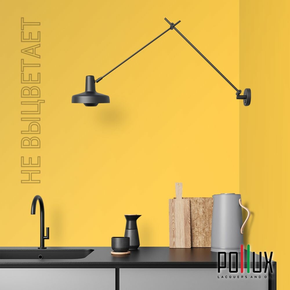 Краска моющаяся интерьерная для стен и потолков, Pollux INTERIOR без запаха, быстросохнущая, акриловая, матовое покрытие, цвет NCS S 6030-Y10R, 1л.