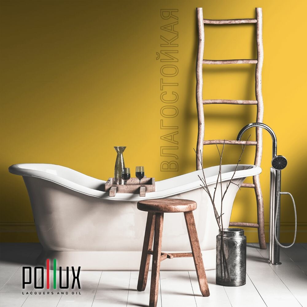 Краска моющаяся интерьерная для стен и потолков, Pollux INTERIOR без запаха, быстросохнущая, акриловая, матовое покрытие, цвет NCS S 1505-Y10R, 1л.