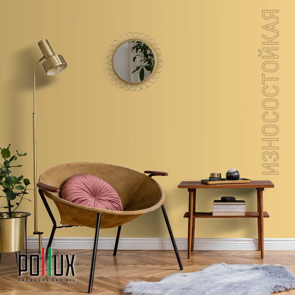 Краска моющаяся интерьерная для стен и потолков, Pollux INTERIOR без запаха, быстросохнущая, акриловая, матовое покрытие, цвет NCS S 1505-Y10R, 1л.