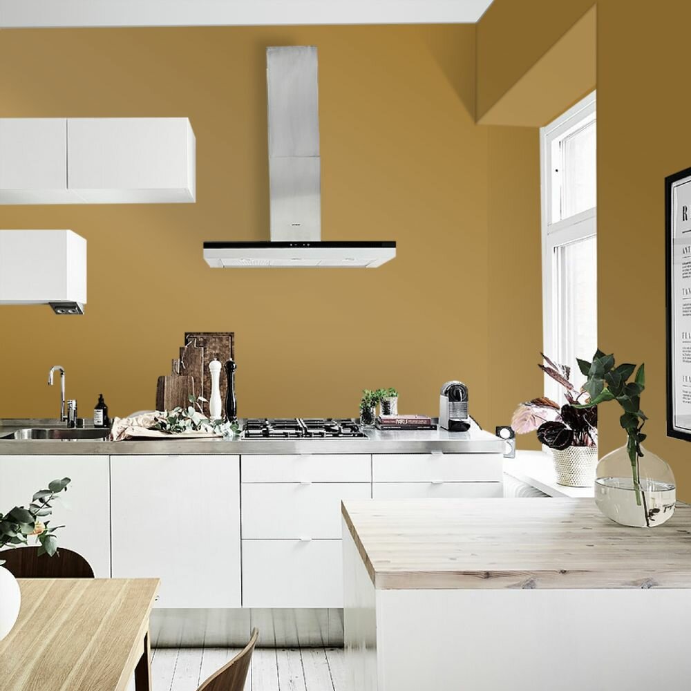 Краска моющаяся интерьерная для стен и потолков, Pollux INTERIOR без запаха, быстросохнущая, акриловая, матовое покрытие, цвет NCS S 0560-Y10R, 1л.