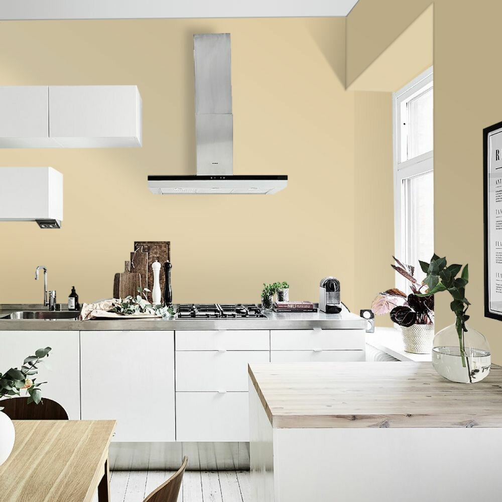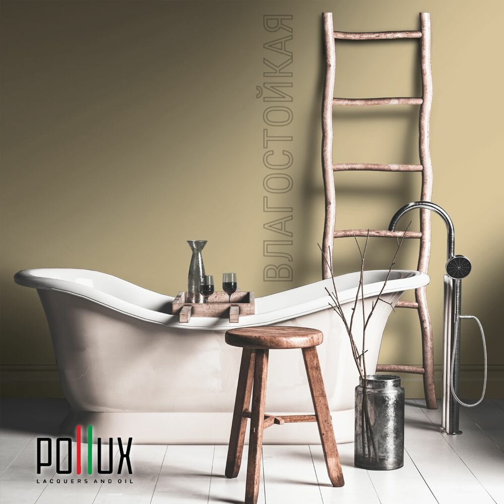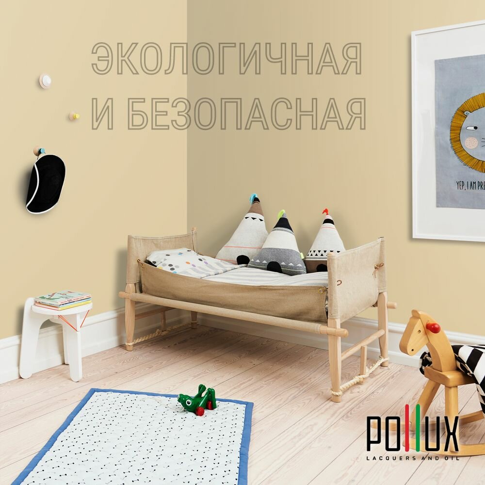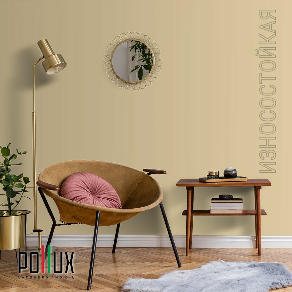 Краска моющаяся интерьерная для стен и потолков, Pollux INTERIOR без запаха, быстросохнущая, акриловая, матовое покрытие, цвет NCS S 1505-Y10R, 1л.