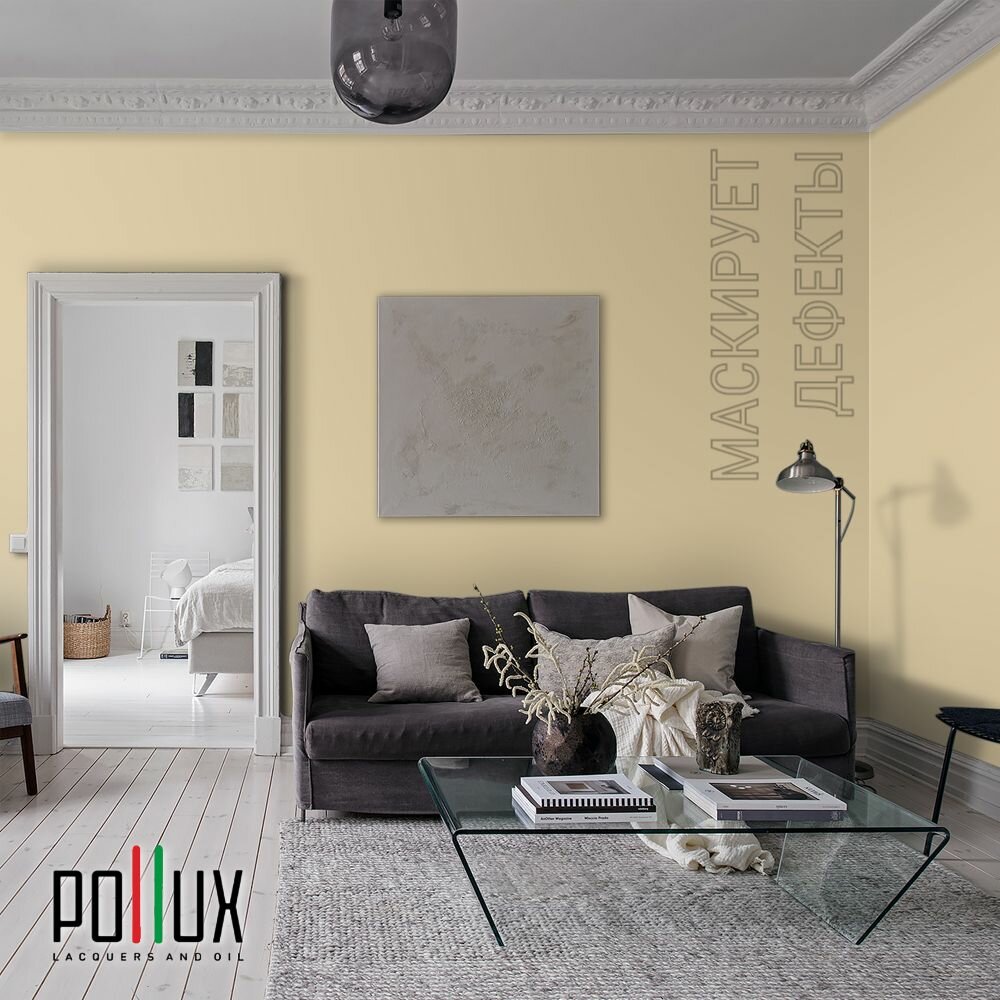 Краска моющаяся интерьерная для стен и потолков, Pollux INTERIOR без запаха, быстросохнущая, акриловая, матовое покрытие, цвет NCS S 0510-Y10R, 1л.