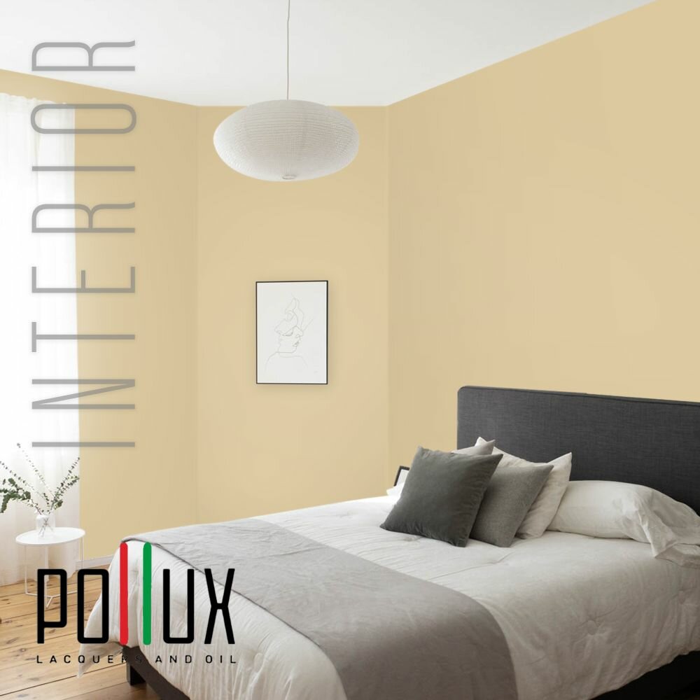 Краска моющаяся интерьерная для стен и потолков, Pollux INTERIOR без запаха, быстросохнущая, акриловая, матовое покрытие, цвет NCS S 0560-Y10R, 1л.