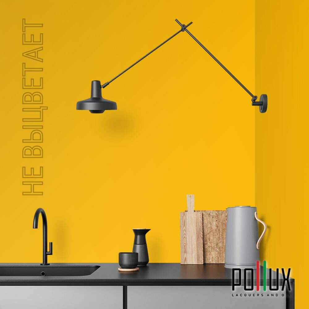 Краска моющаяся интерьерная для стен и потолков, Pollux INTERIOR без запаха, быстросохнущая, акриловая, матовое покрытие, цвет NCS S 6030-Y10R, 1л.