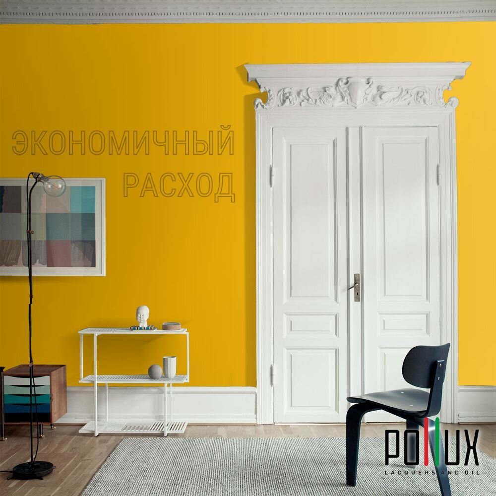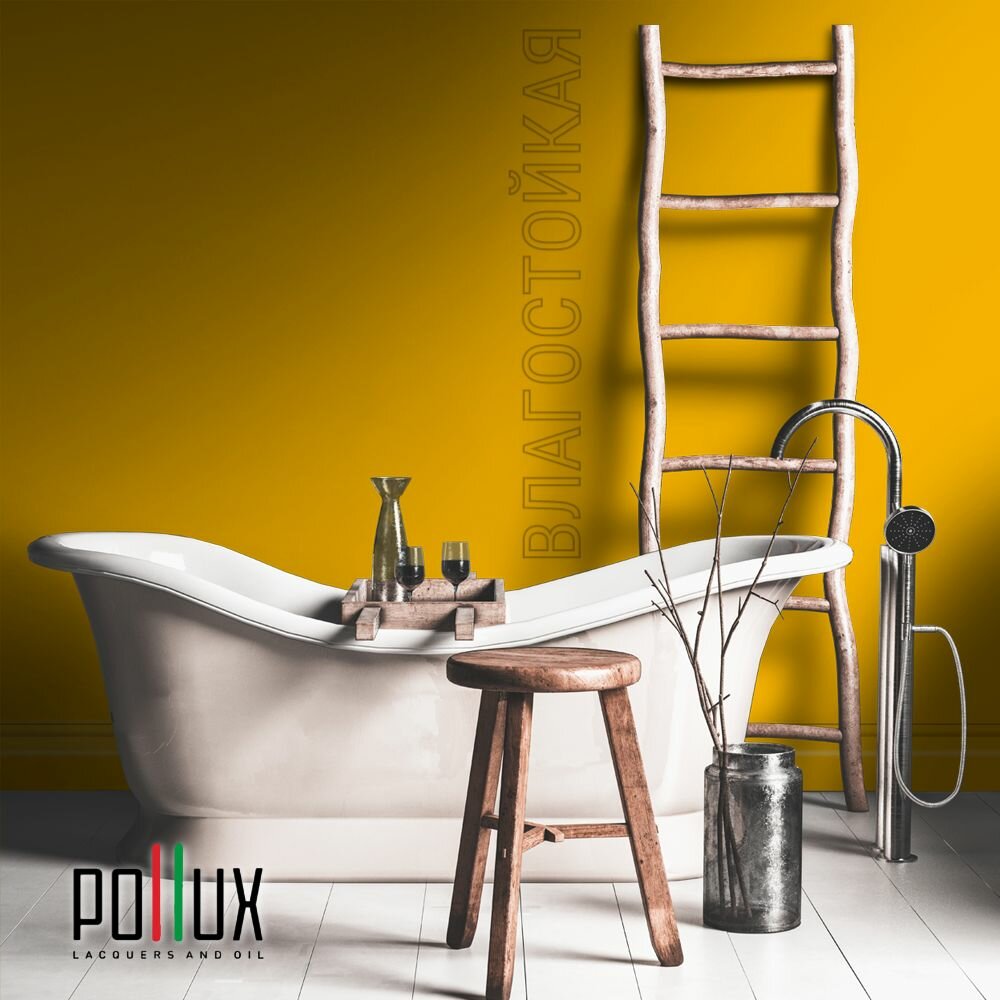 Краска моющаяся интерьерная для стен и потолков, Pollux INTERIOR без запаха, быстросохнущая, акриловая, матовое покрытие, цвет NCS S 1080-Y10R, 1л.