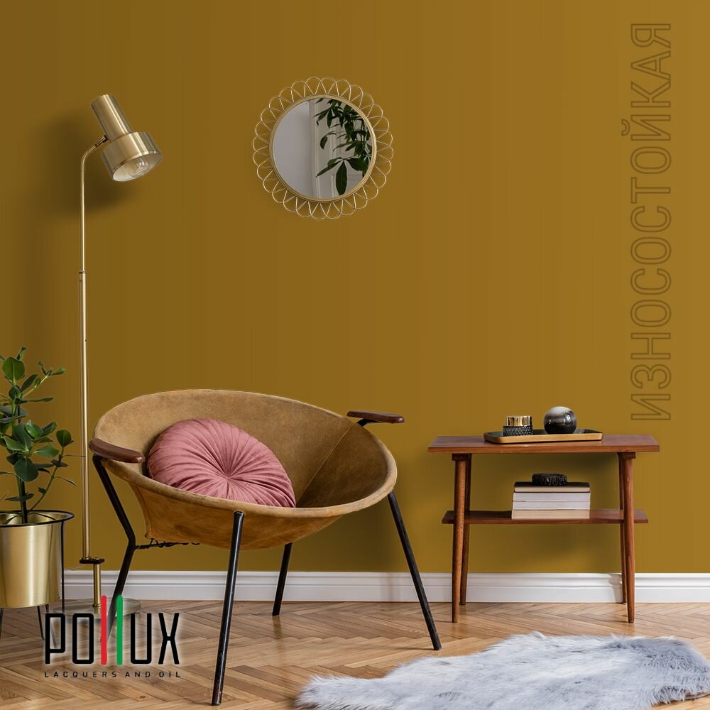 Краска моющаяся интерьерная для стен и потолков, Pollux INTERIOR без запаха, быстросохнущая, акриловая, матовое покрытие, цвет NCS S 4050-Y10R, 1л.