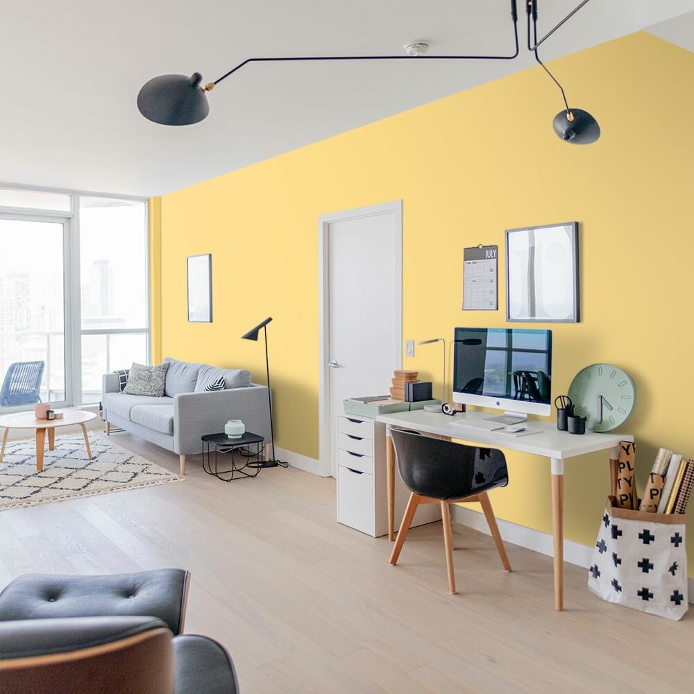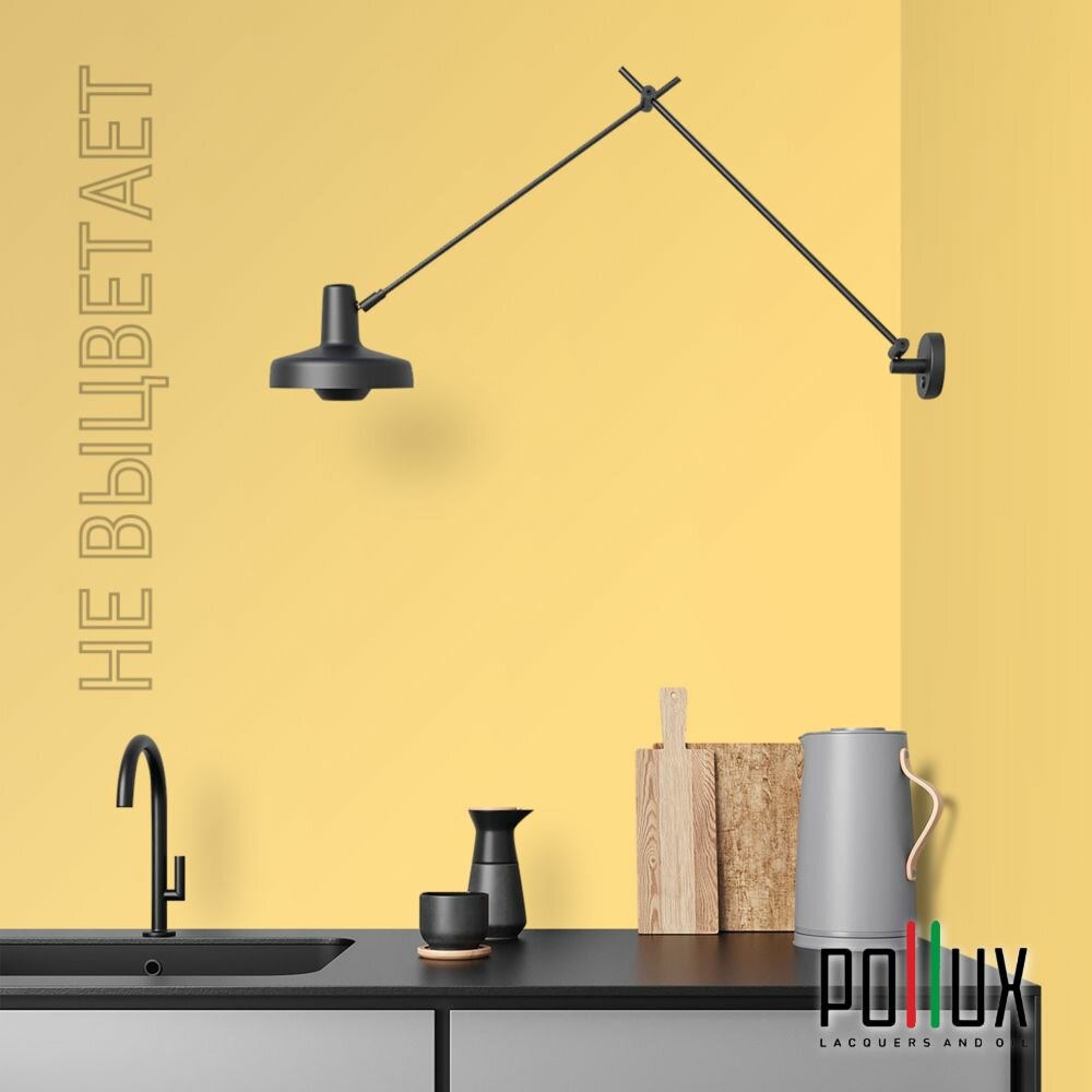 Краска моющаяся интерьерная для стен и потолков, Pollux INTERIOR без запаха, быстросохнущая, акриловая, матовое покрытие, цвет NCS S 6030-Y10R, 1л.