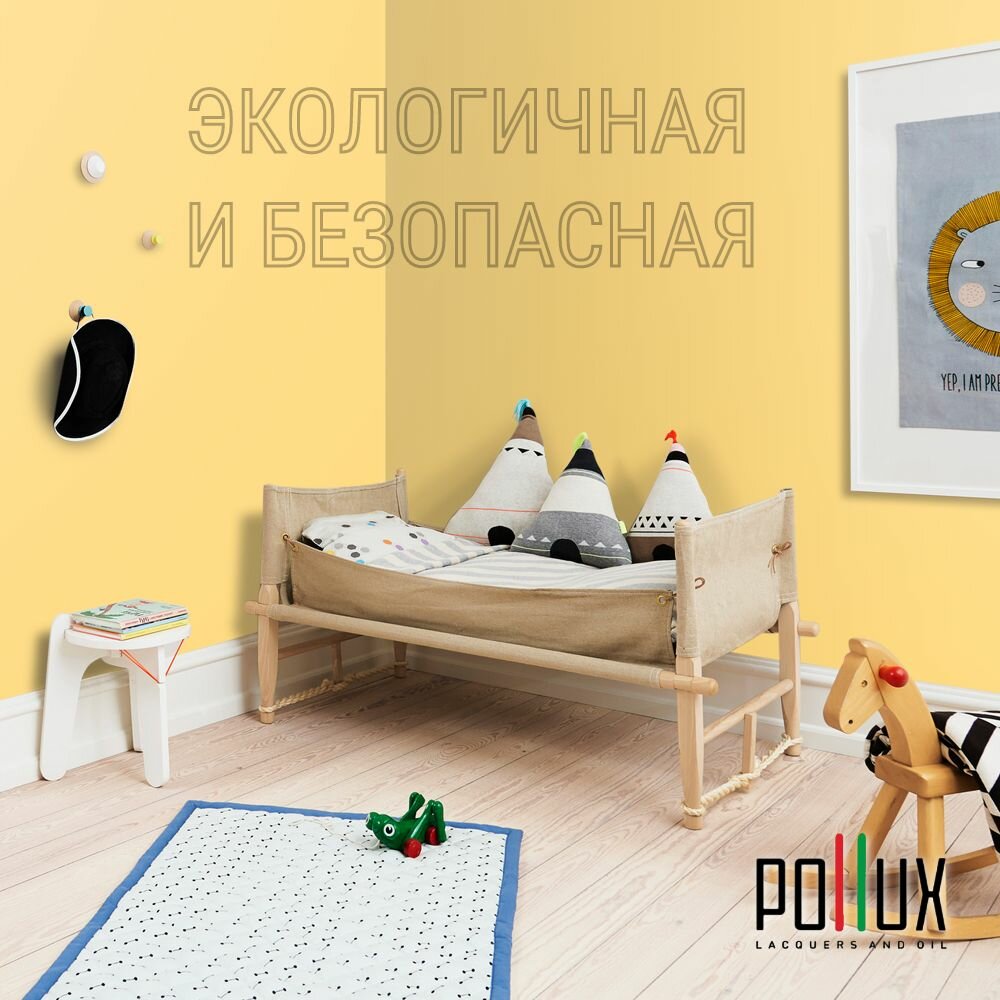 Краска моющаяся интерьерная для стен и потолков, Pollux INTERIOR без запаха, быстросохнущая, акриловая, матовое покрытие, цвет NCS S 0510-Y10R, 1л.