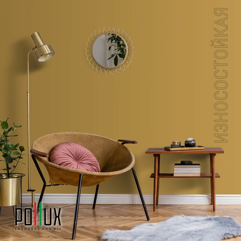 Краска моющаяся интерьерная для стен и потолков, Pollux INTERIOR без запаха, быстросохнущая, акриловая, матовое покрытие, цвет NCS S 0570-Y10R, 1л.