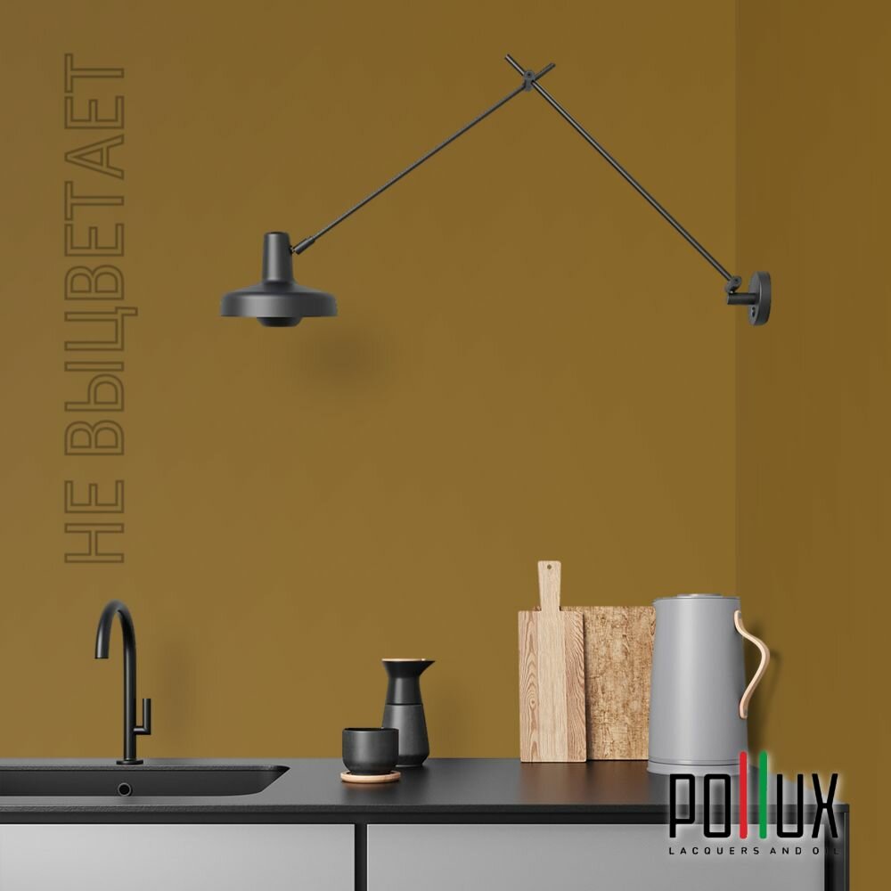 Краска моющаяся интерьерная для стен и потолков, Pollux INTERIOR без запаха, быстросохнущая, акриловая, матовое покрытие, цвет NCS S 3010-Y10R, 1л.