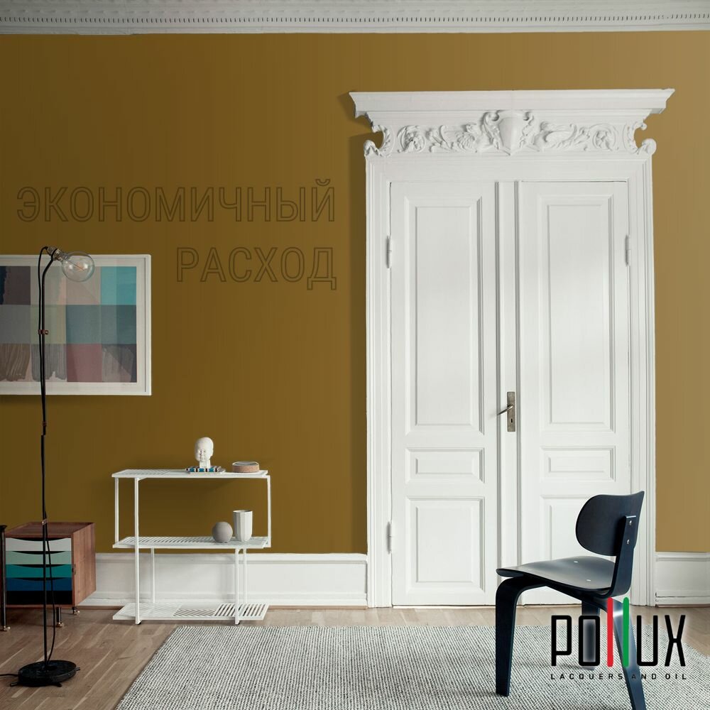 Краска моющаяся интерьерная для стен и потолков, Pollux INTERIOR без запаха, быстросохнущая, акриловая, матовое покрытие, цвет NCS S 1080-Y10R, 1л.