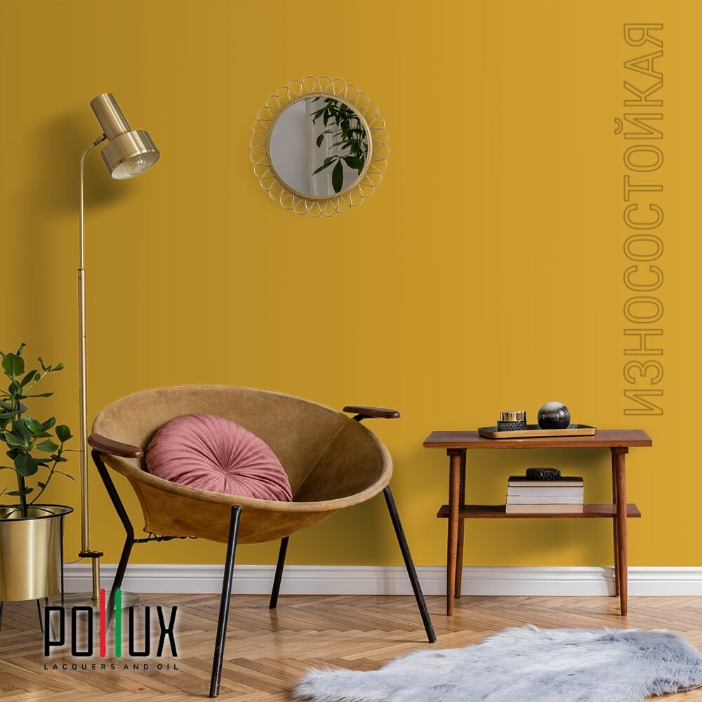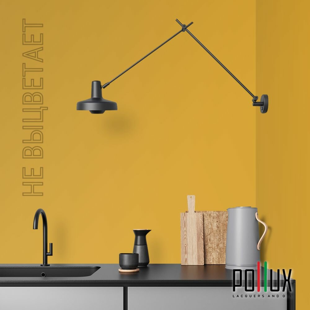 Краска моющаяся интерьерная для стен и потолков, Pollux INTERIOR без запаха, быстросохнущая, акриловая, матовое покрытие, цвет NCS S 6030-Y10R, 1л.