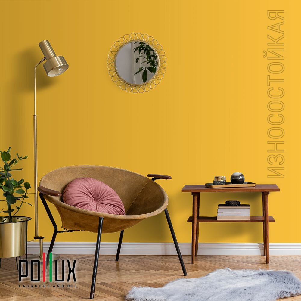 Краска моющаяся интерьерная для стен и потолков, Pollux INTERIOR без запаха, быстросохнущая, акриловая, матовое покрытие, цвет NCS S 6030-Y10R, 1л.