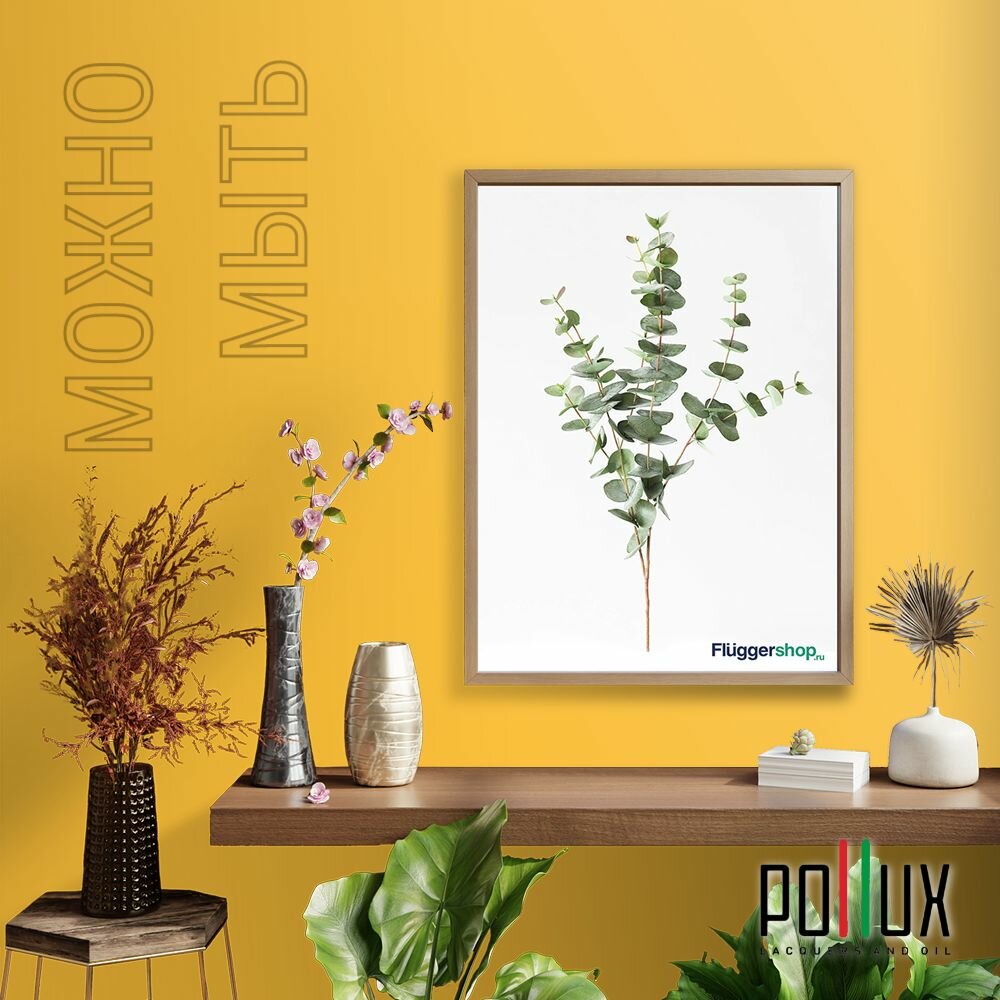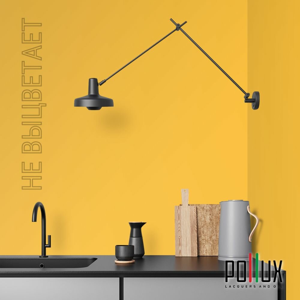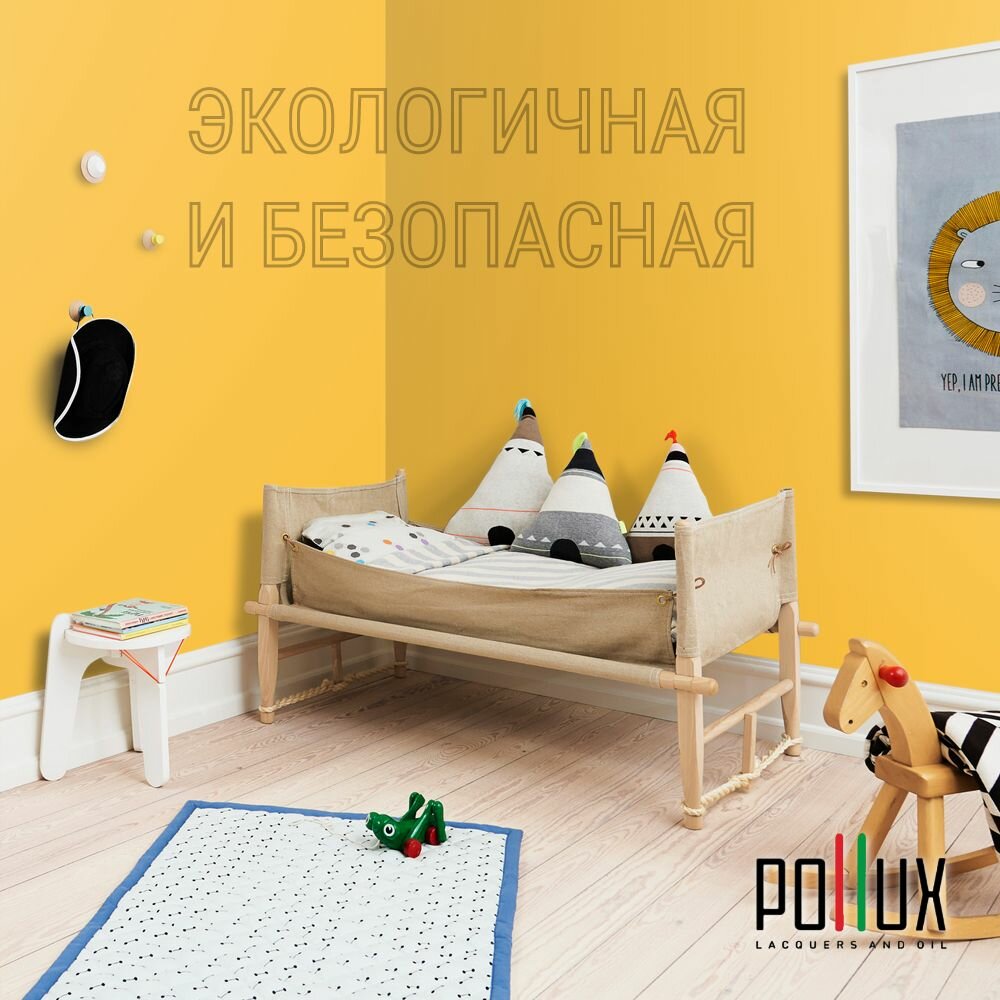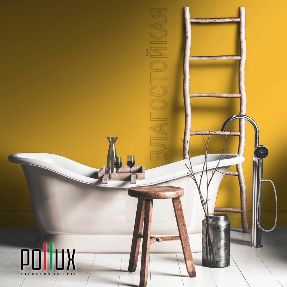 Краска моющаяся интерьерная для стен и потолков, Pollux INTERIOR без запаха, быстросохнущая, акриловая, матовое покрытие, цвет NCS S 1080-Y10R, 1л.
