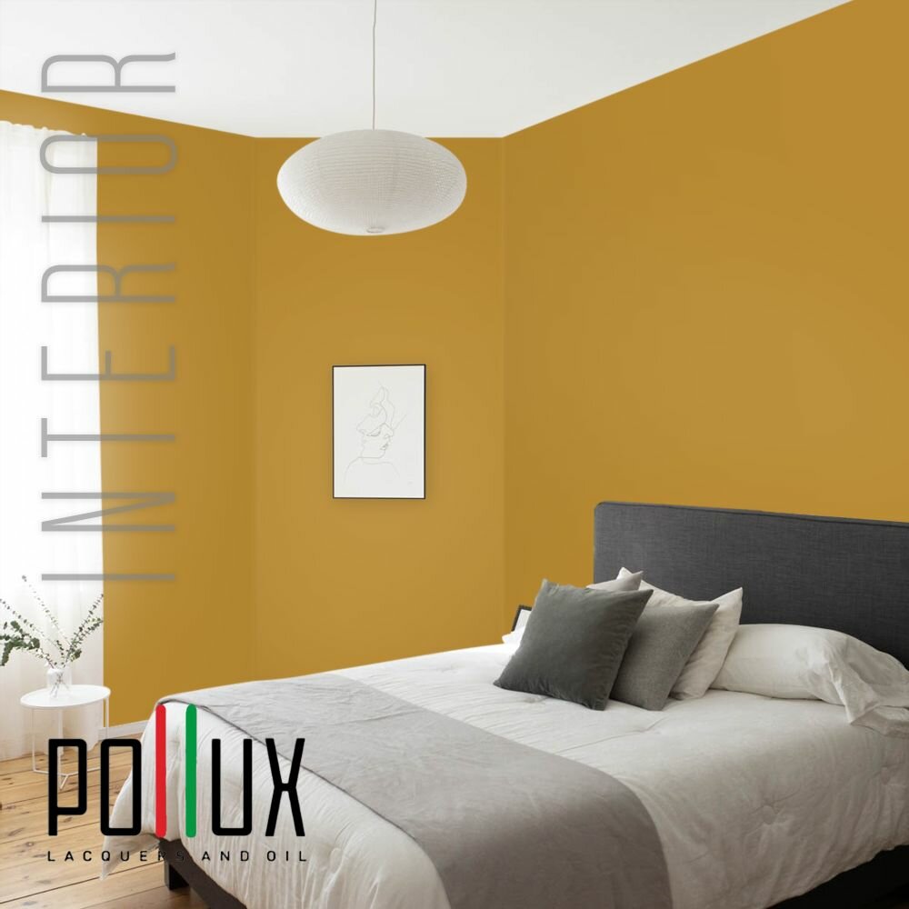 Краска моющаяся интерьерная для стен и потолков, Pollux INTERIOR без запаха, быстросохнущая, акриловая, матовое покрытие, цвет NCS S 0560-Y10R, 1л.