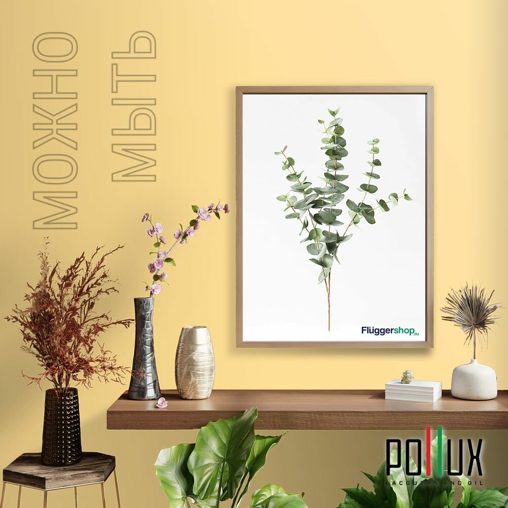 Краска моющаяся интерьерная для стен и потолков, Pollux INTERIOR без запаха, быстросохнущая, акриловая, матовое покрытие, цвет NCS S 1080-Y10R, 1л.