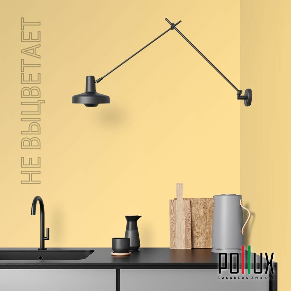 Краска моющаяся интерьерная для стен и потолков, Pollux INTERIOR без запаха, быстросохнущая, акриловая, матовое покрытие, цвет NCS S 1505-Y10R, 1л.