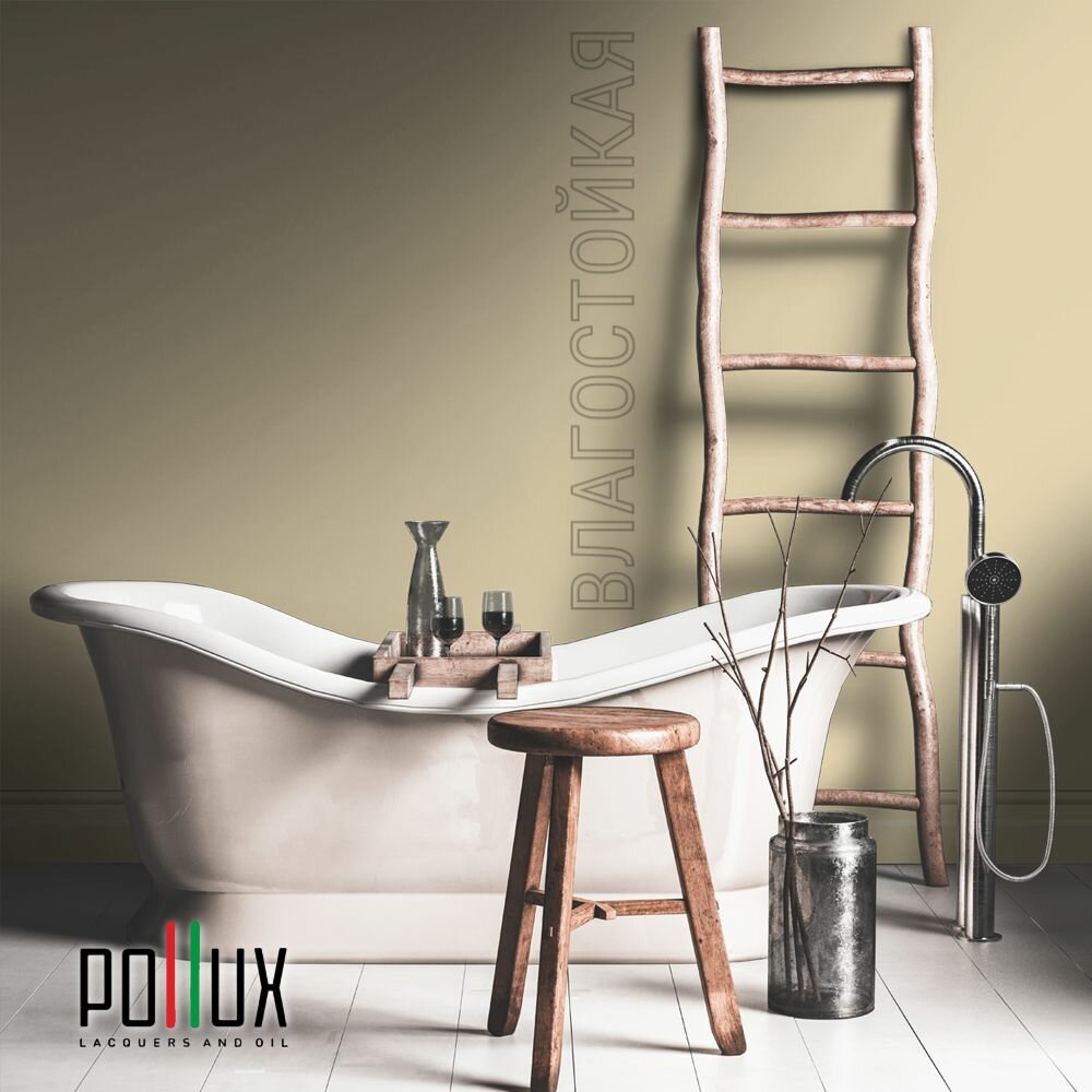 Краска моющаяся интерьерная для стен и потолков, Pollux INTERIOR без запаха, быстросохнущая, акриловая, матовое покрытие, цвет NCS S 2050-Y10R, 1л.