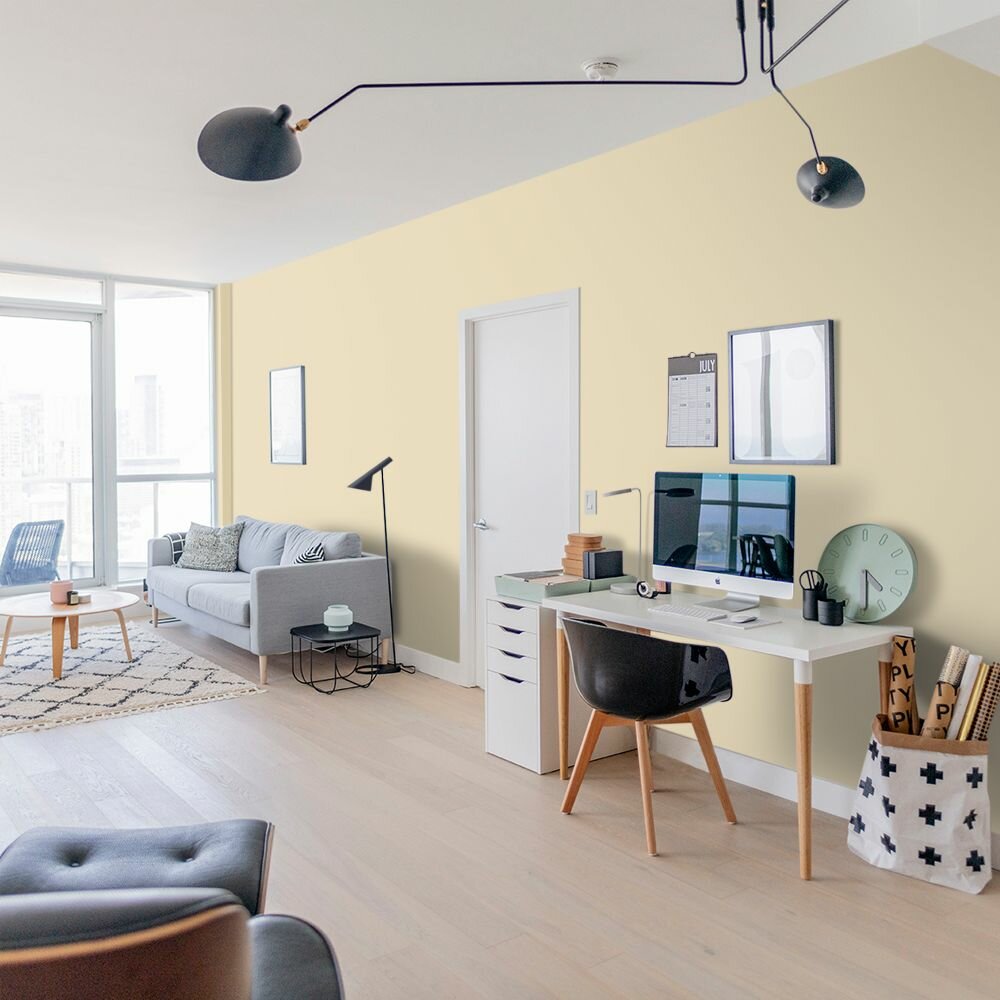 Краска моющаяся интерьерная для стен и потолков, Pollux INTERIOR без запаха, быстросохнущая, акриловая, матовое покрытие, цвет NCS S 0520-Y10R, 1л.