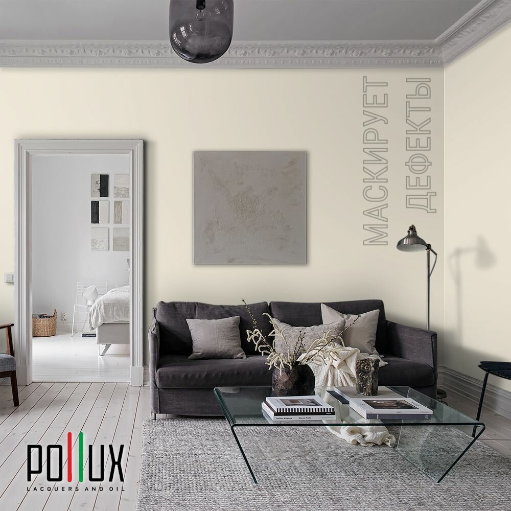Краска моющаяся интерьерная для стен и потолков, Pollux INTERIOR без запаха, быстросохнущая, акриловая, матовое покрытие, цвет NCS S 0505-Y10R, 1л.