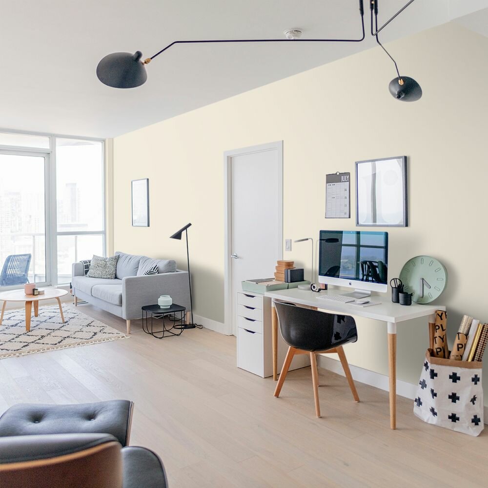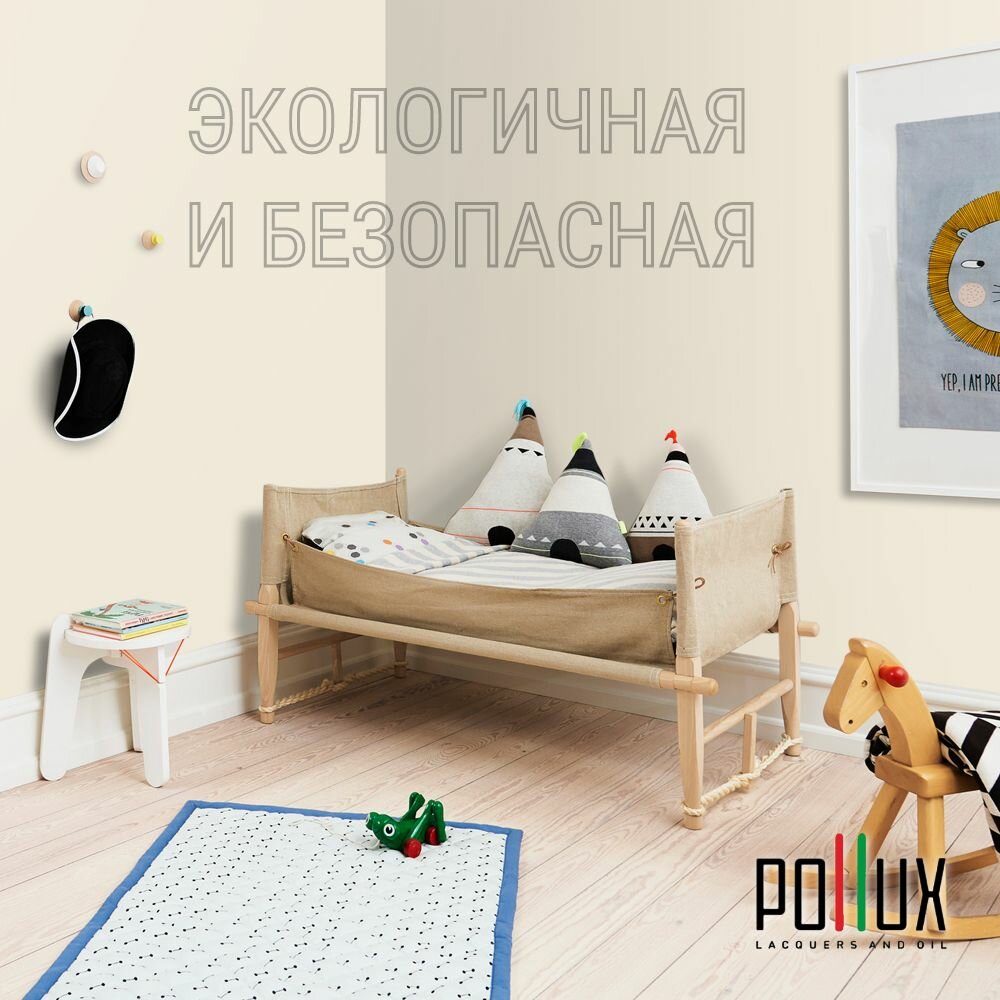 Краска моющаяся интерьерная для стен и потолков, Pollux INTERIOR без запаха, быстросохнущая, акриловая, матовое покрытие, цвет NCS S 0510-Y10R, 1л.