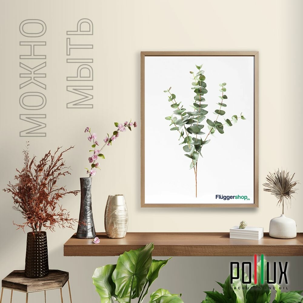 Краска моющаяся интерьерная для стен и потолков, Pollux INTERIOR без запаха, быстросохнущая, акриловая, матовое покрытие, цвет NCS S 4040-Y10R, 1л.
