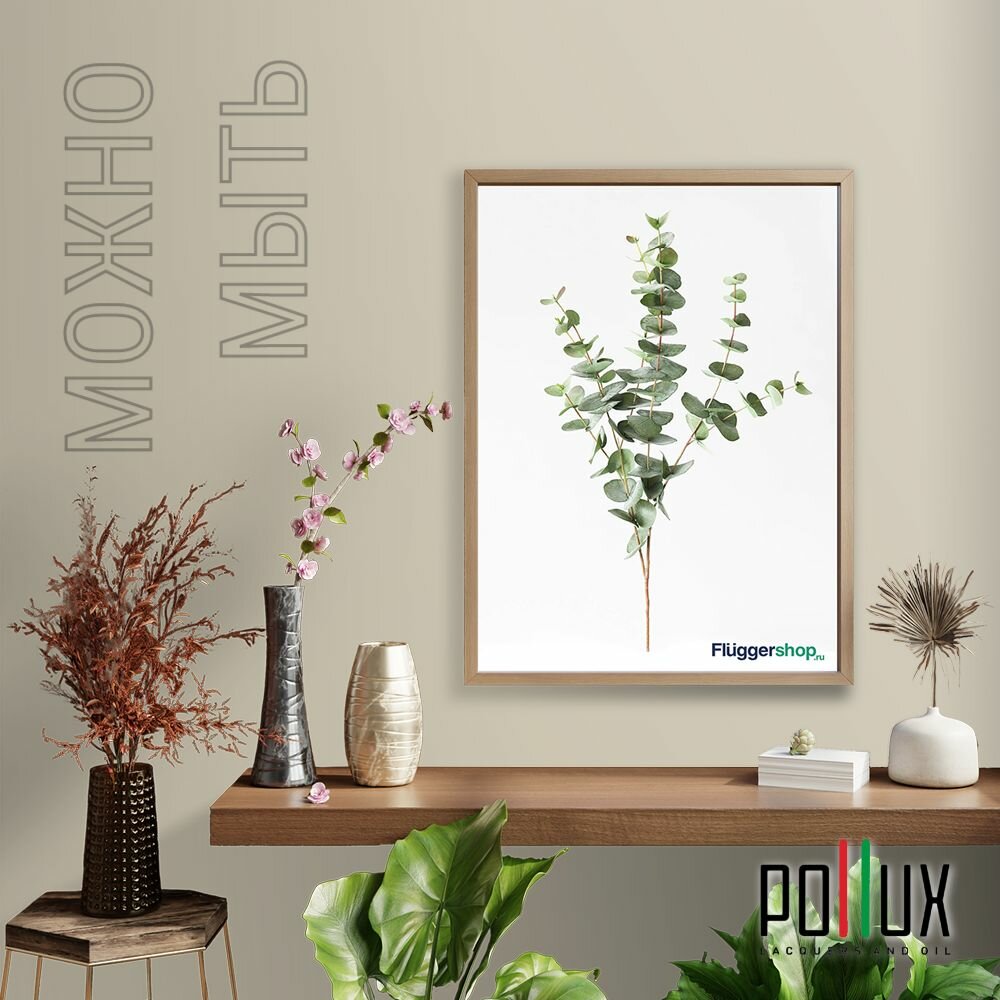 Краска моющаяся интерьерная для стен и потолков, Pollux INTERIOR без запаха, быстросохнущая, акриловая, матовое покрытие, цвет NCS S 4030-G70Y, 1л.