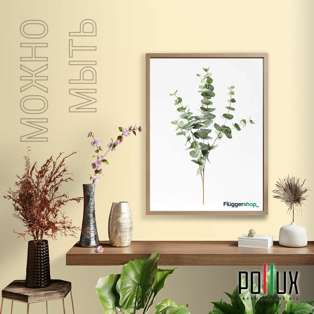 Краска моющаяся интерьерная для стен и потолков, Pollux INTERIOR без запаха, быстросохнущая, акриловая, матовое покрытие, цвет NCS S 0510-Y10R, 1л.